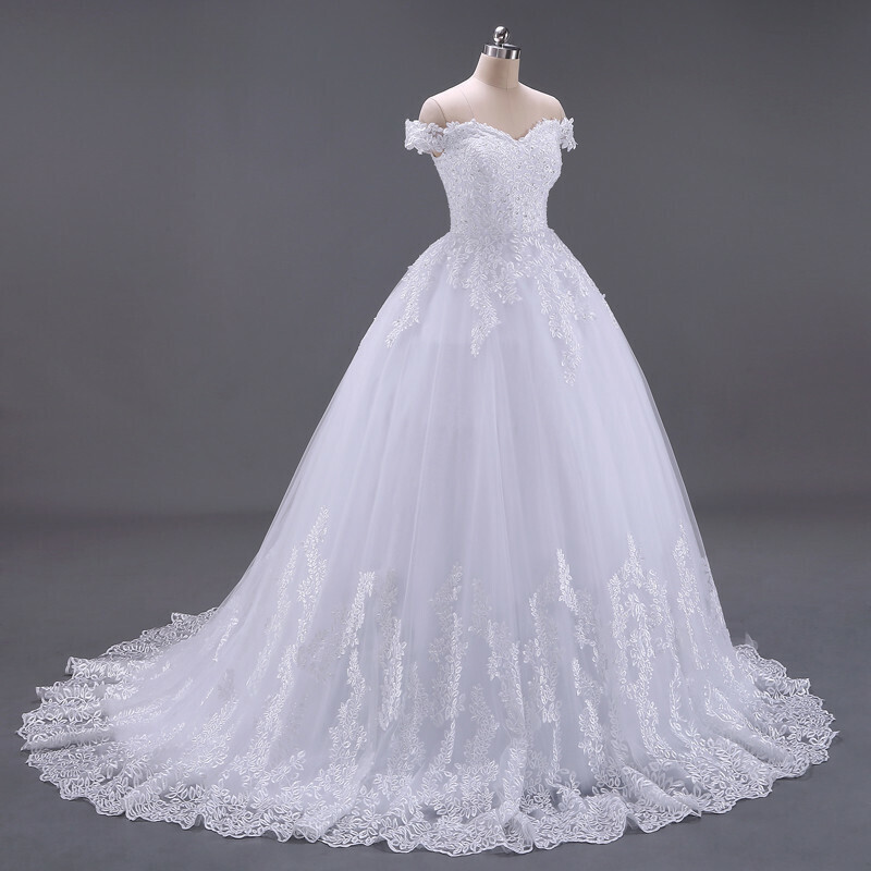 Elegant A-Line Wedding Dresses Off the Shoulder Lace Appliques Bridal Ball Gowns