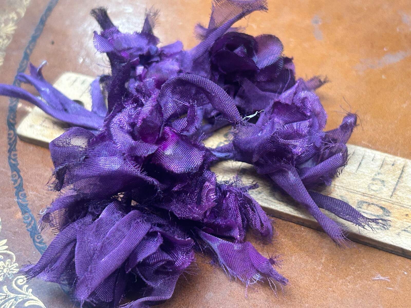 vintage millinery bouquet hand wrapped silk 1940s flowers purple Japan