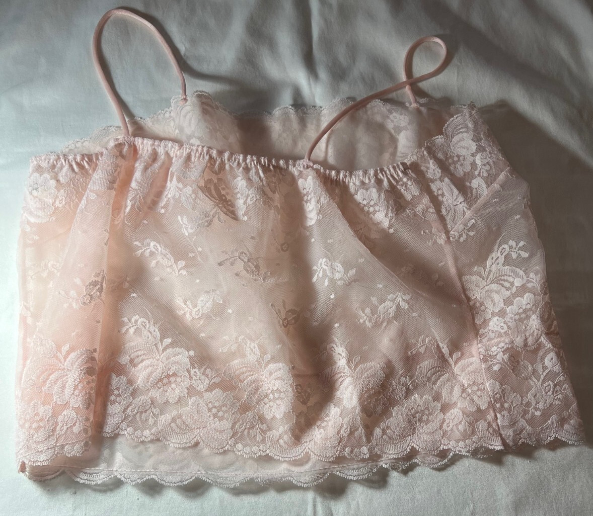 как выглядит Vintage Crop Cami Tank Top Size Large Camisole by Deena PINK Sheer Nylon LACE фото