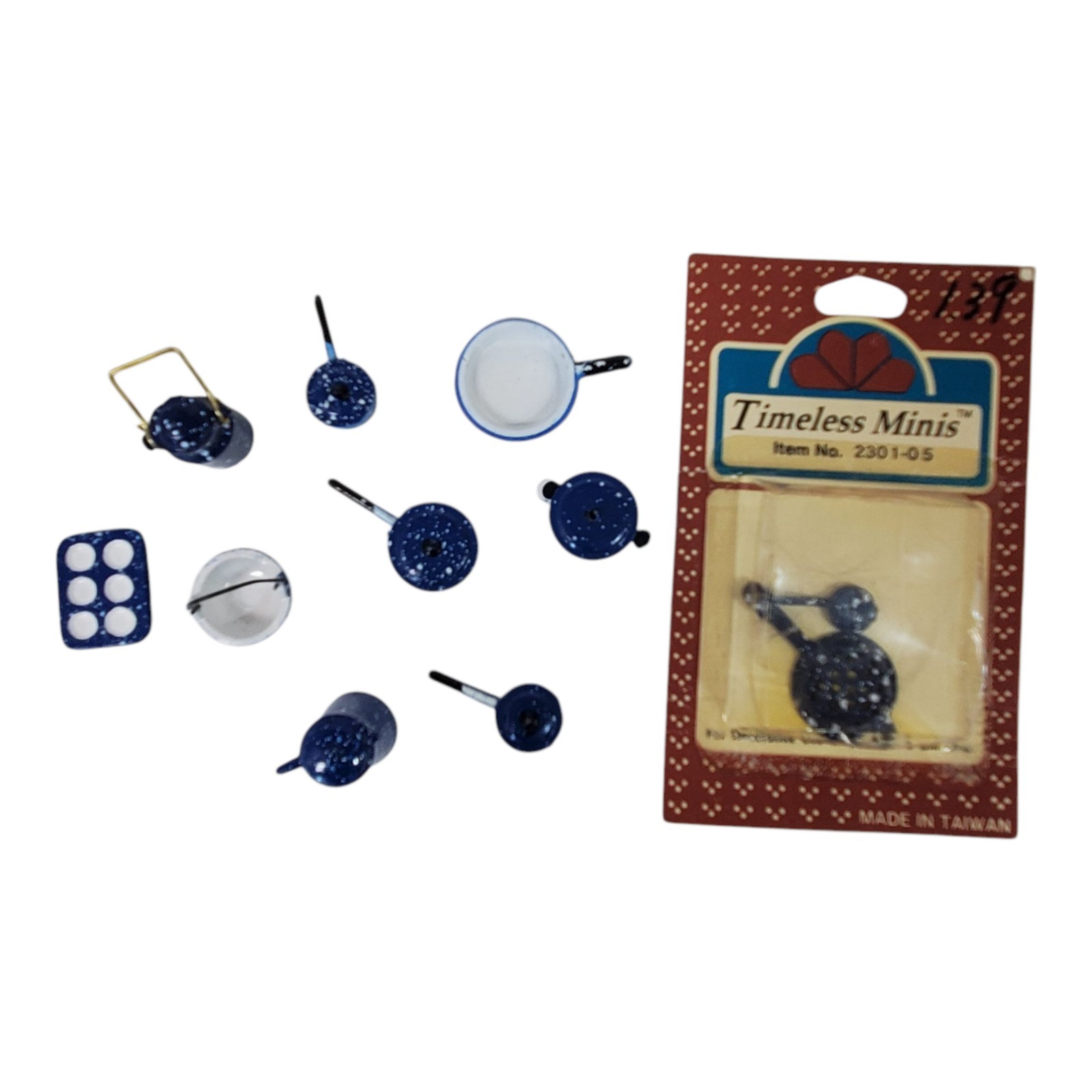 Dollhouse Miniature Blue Speckled Enamelware Cook Ware Pots Pans Set 17 Pc Set