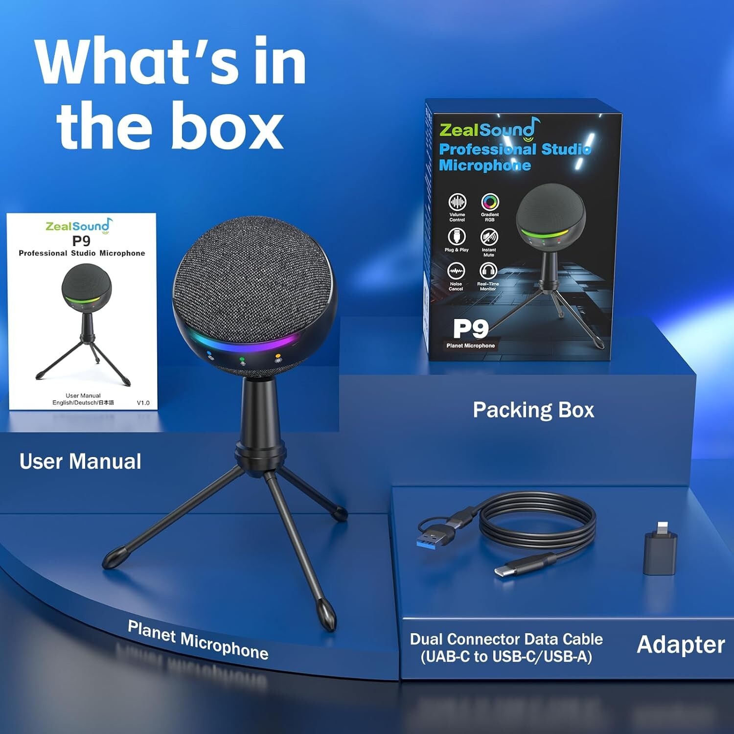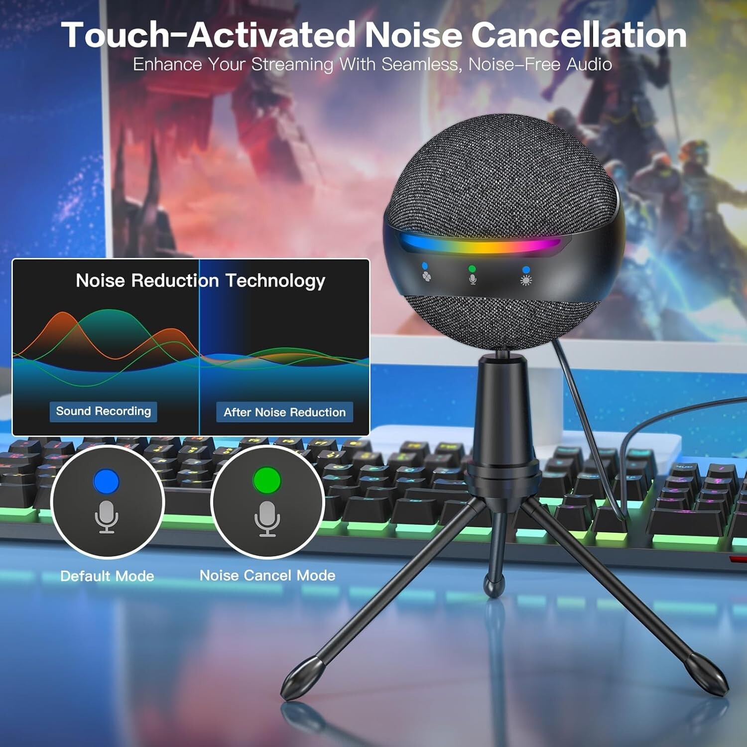 ZealSound Microphone for iPhone,USB mic for PC gaming, Mute Active Noise Cancel