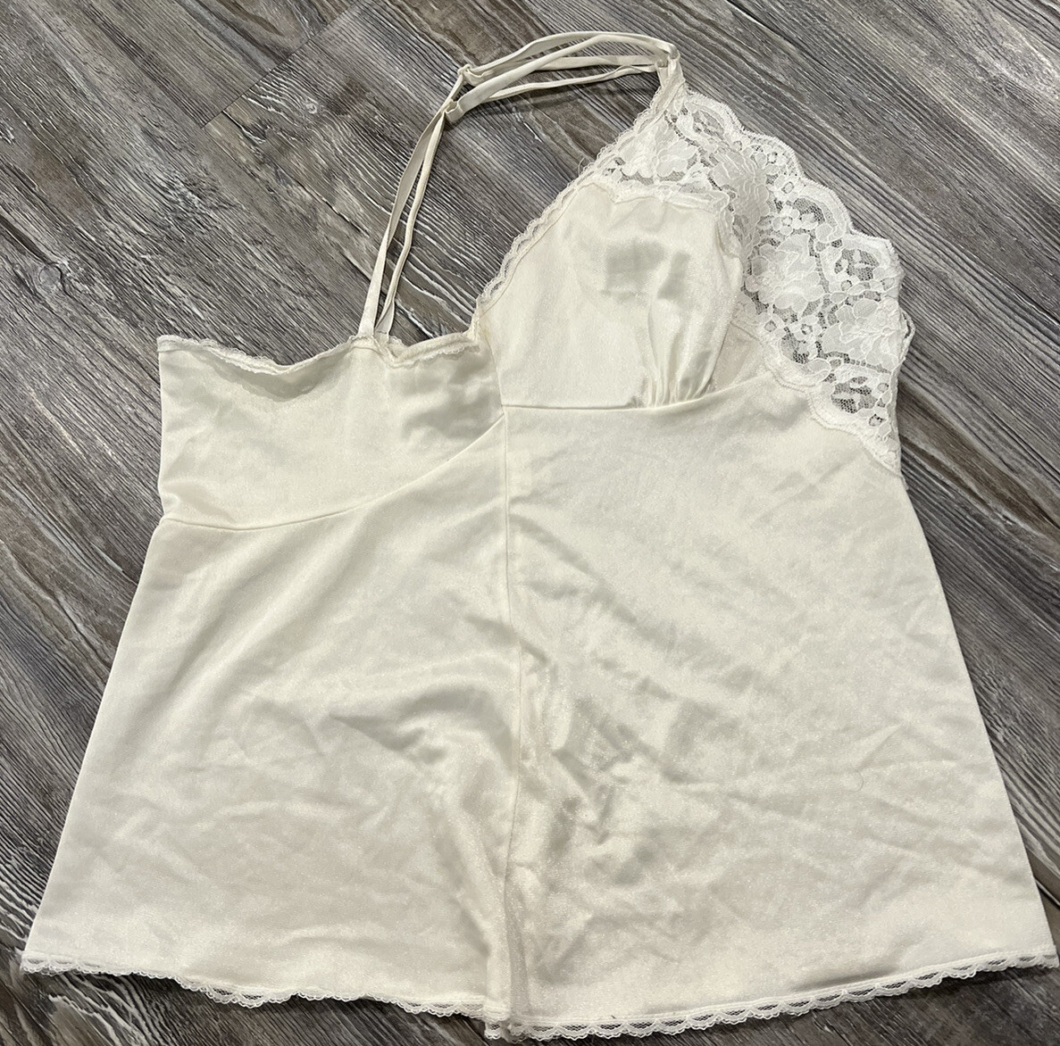 VTG 80 s Women s Ivory 100 Nylon Satin Floral Laced Bodies Made in USA Cami M