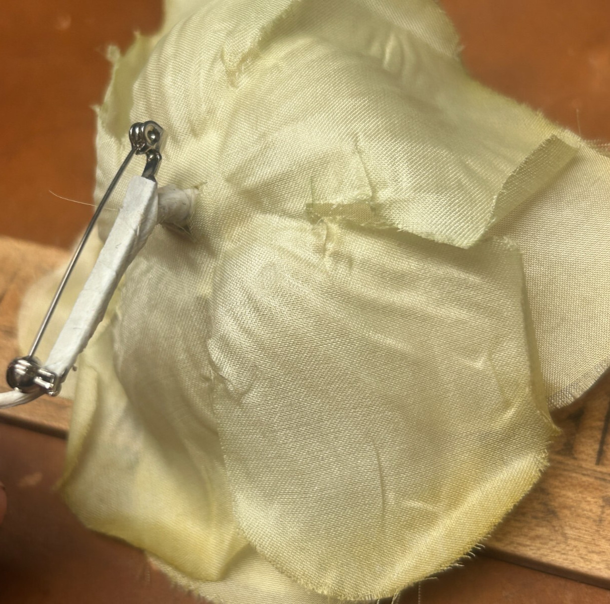 как выглядит vintage millinery 1960s hand rolled flower rose 4.5" yellow pear silk 1pc USA фото