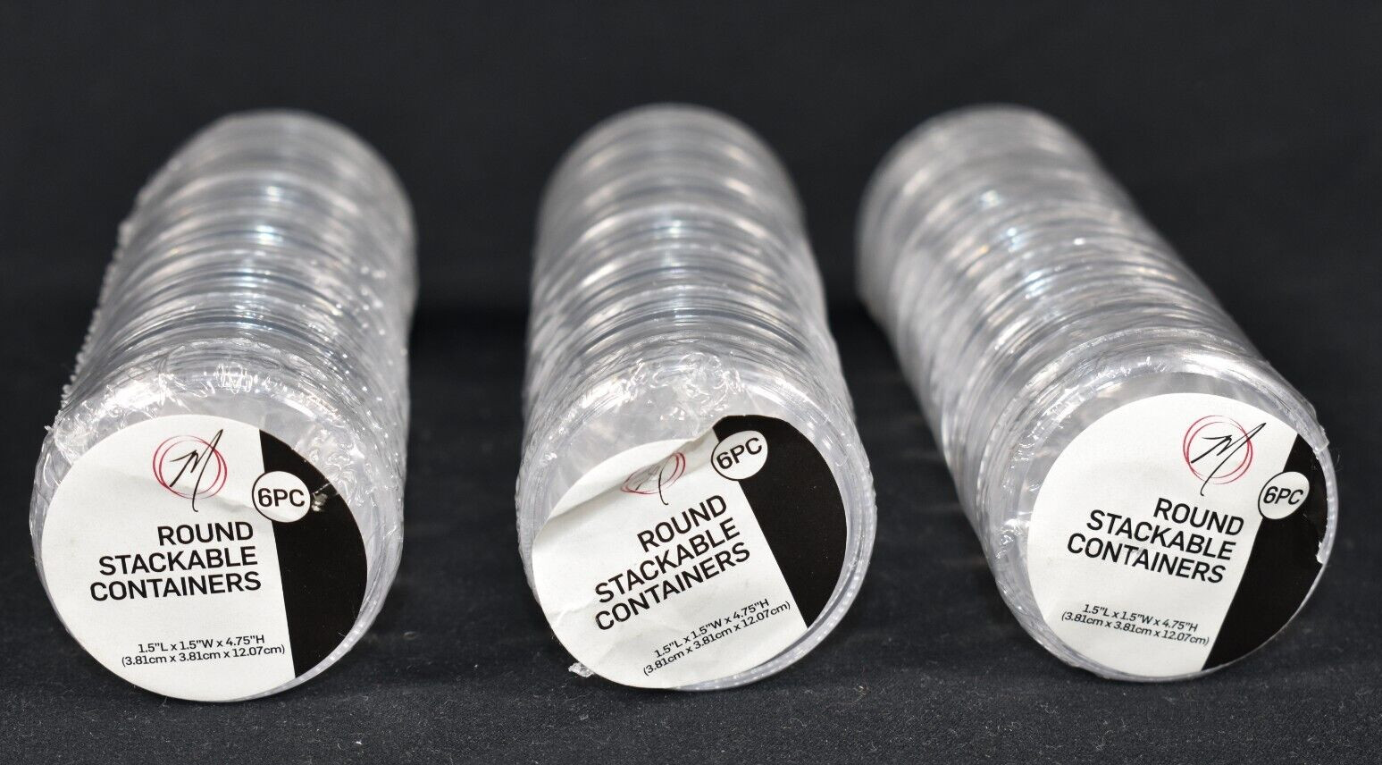 Set of 3 Stackable Clear 6 Pc Storage Containers Pills Beads Crafts Small 1.5