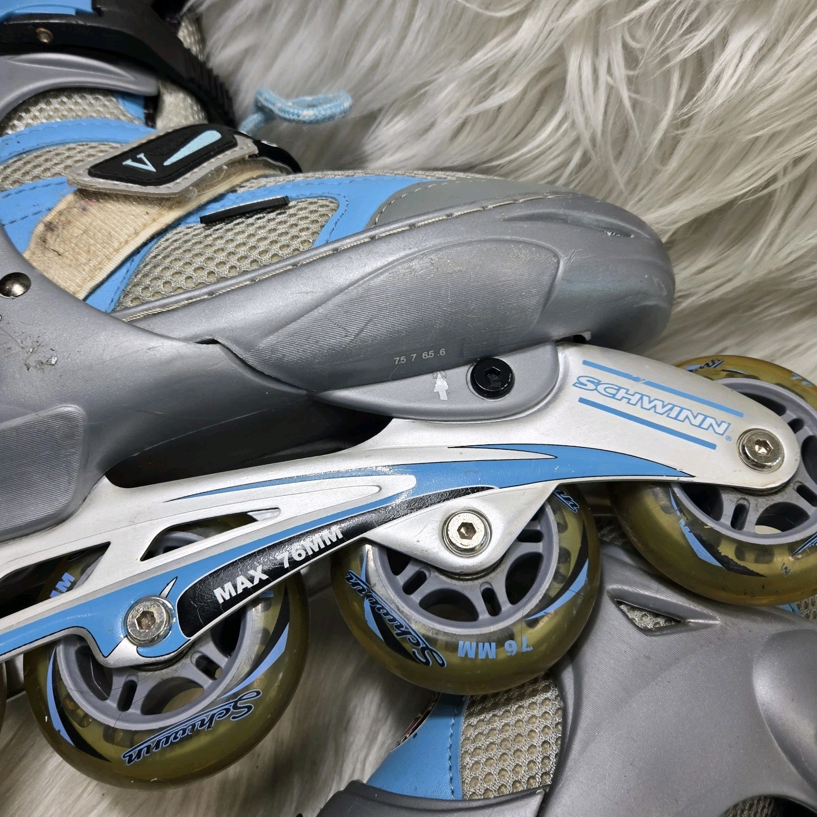 Schwinn Abec 7 Silver Blue 76mm Inline Roller Skates Adult 6-7 Challenge Series