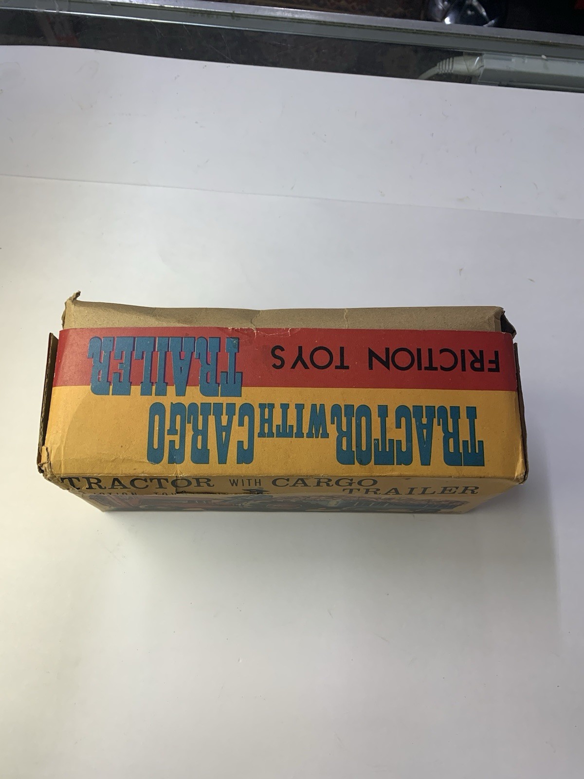как выглядит Vintage Toy 1960s Tin Friction Farm Set 1417, Japan Tractor-trailer BOX ONLY фото