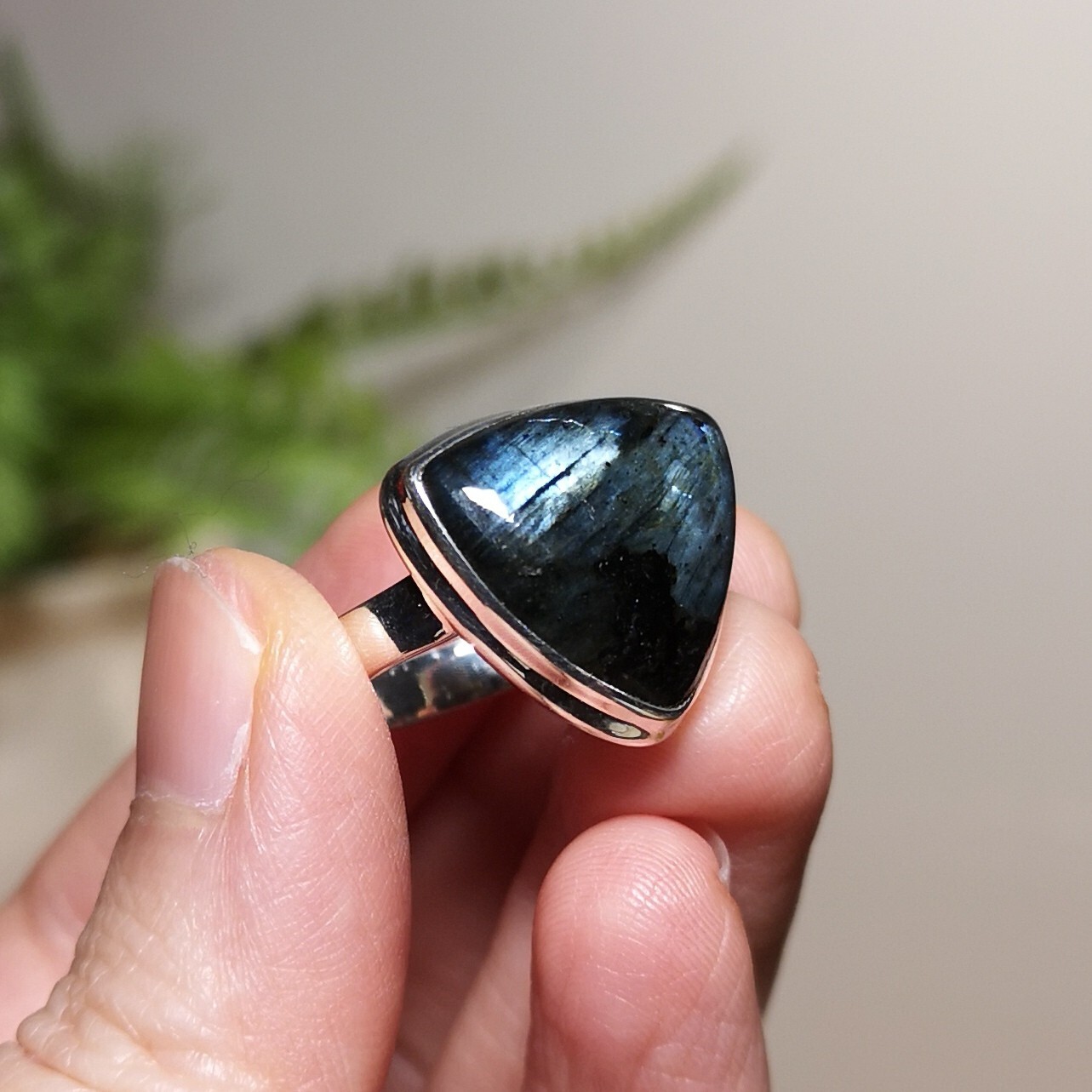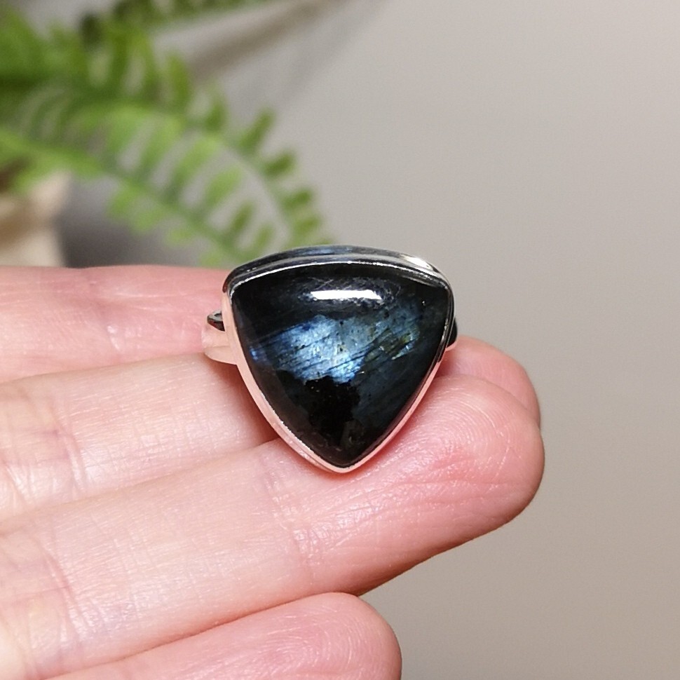 как выглядит Quality Natural Larvakite 925 Sterling Silver Ring Size US 8.5 фото