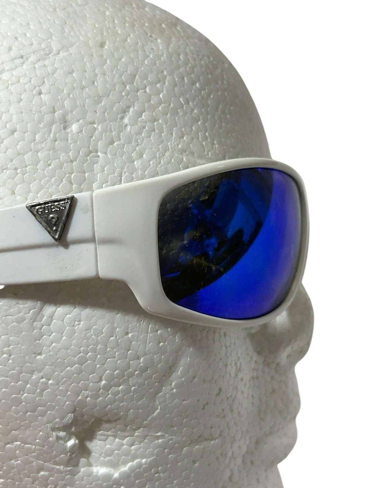 Vintage GUESS Triangle LOGO DESIGNER MIRRORED BLUE LENSES SUNGLASSES