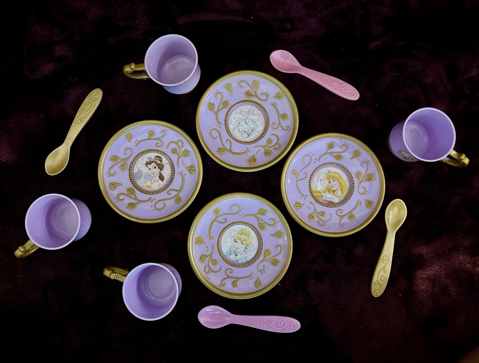 как выглядит Vintage Disney princess castle 12 piece tea set for kids creative tea party play фото