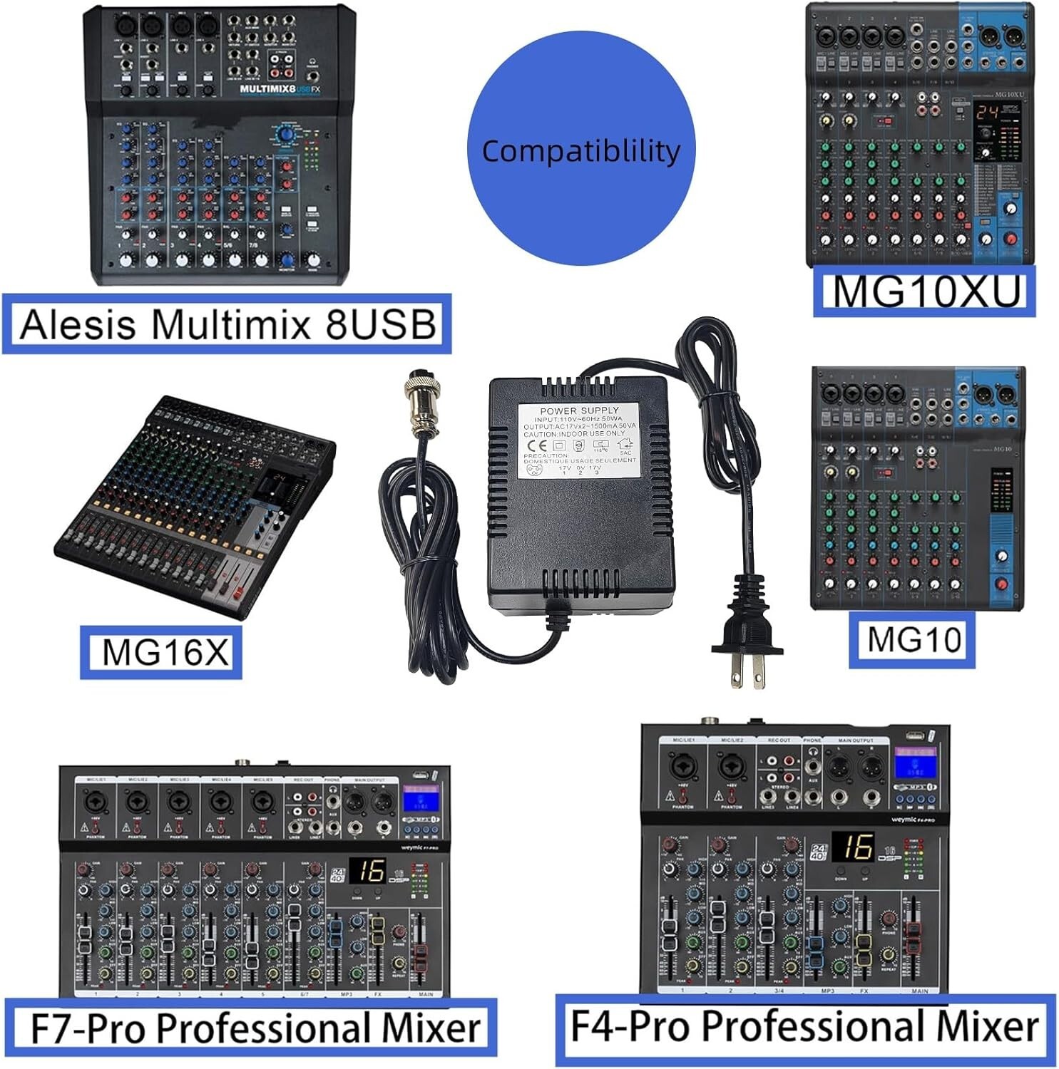 17VAC 1500Ma Power Adapter 3-Pin Connector Plug for Yamaha Mixer Mg10Xu Mg10Xuf