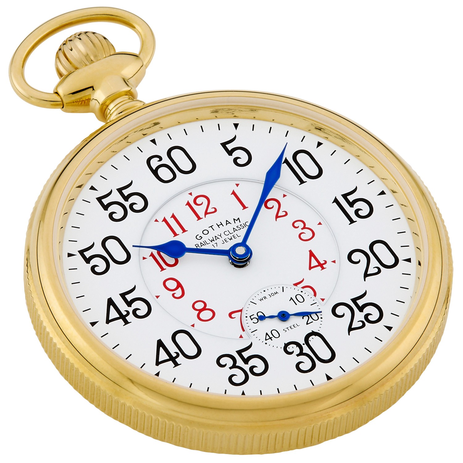 Gotham Men's Gold Plated Stainless Steel 17 Jewel Mechanical Pocket Watch