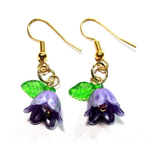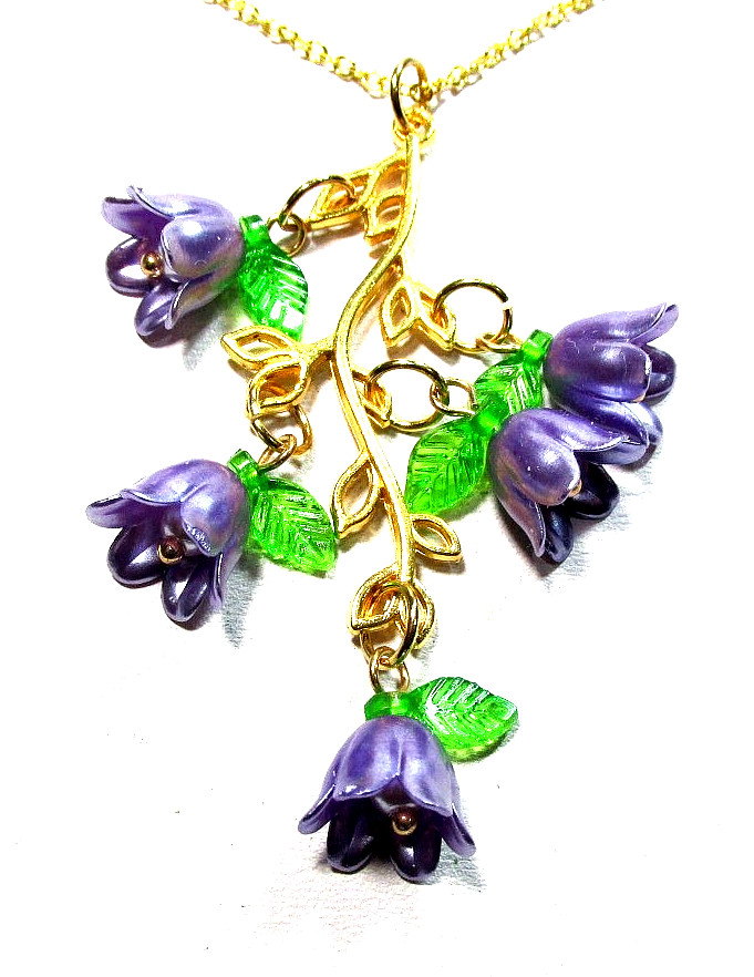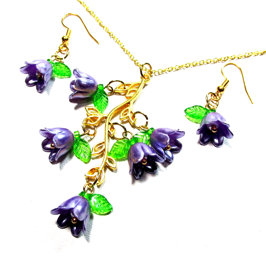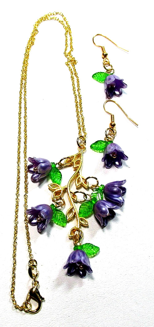 как выглядит Gold Tone Purple Tulip Flower 18" Necklace Pierced Earrings - NWOT 3278 фото