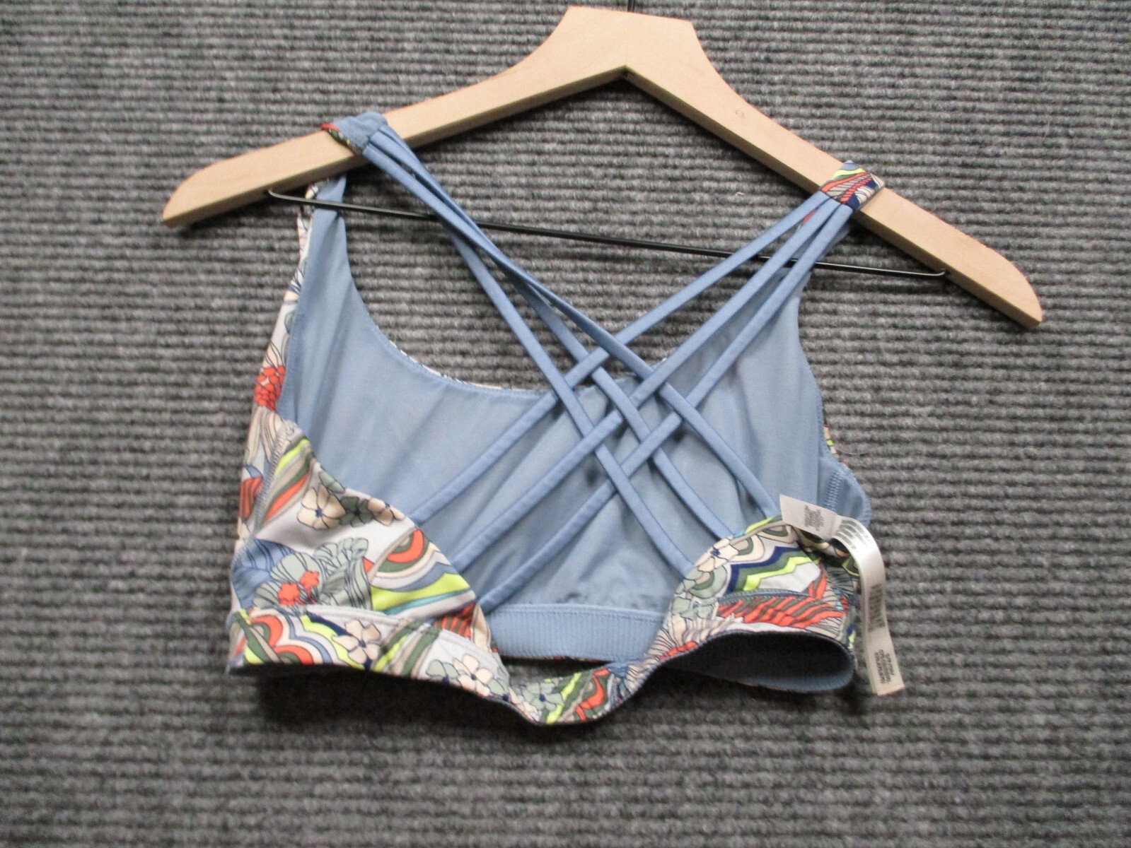 как выглядит Victorias Secret Bluek Floral SMALL Incredible Strappy Back Lounge Sport Bra VS фото