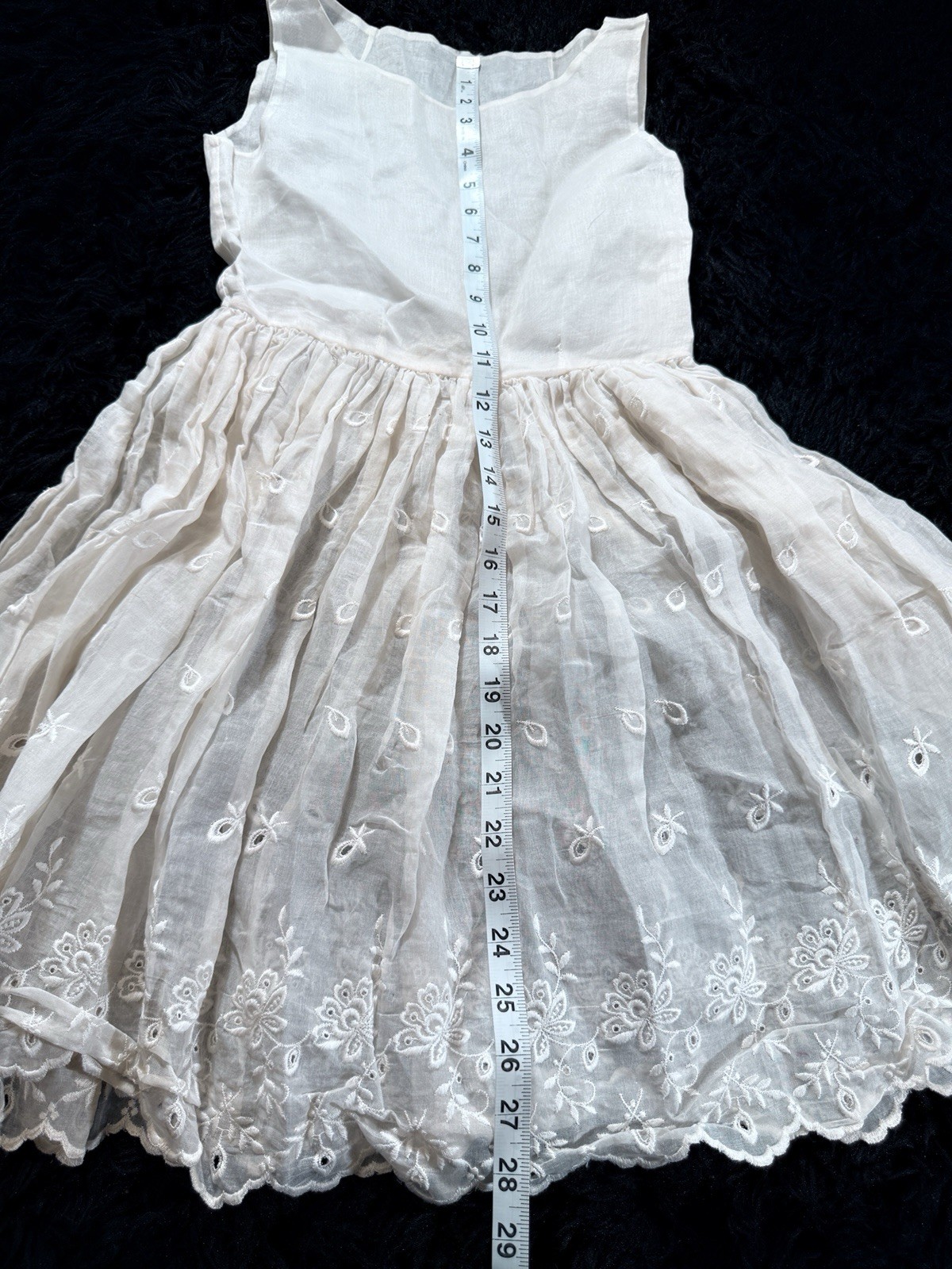 Vintage 1950s White Nylon Girl s Party Dress w/ Embroidered Sheer Skirt Size 5-6