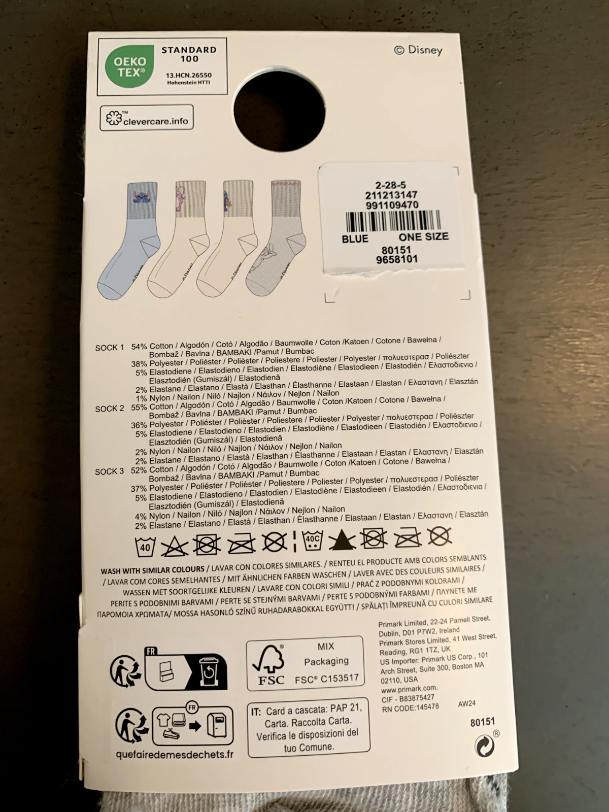 Lilo stitch disney socks pack of 3 new nwt gift primark tube adult womens OS