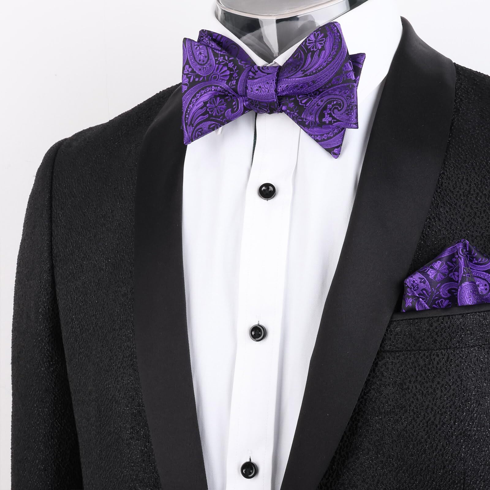 Men's Paisley Self-Tied Bow Tie Set Jacquard Tuxedo Pocket Square Wedding