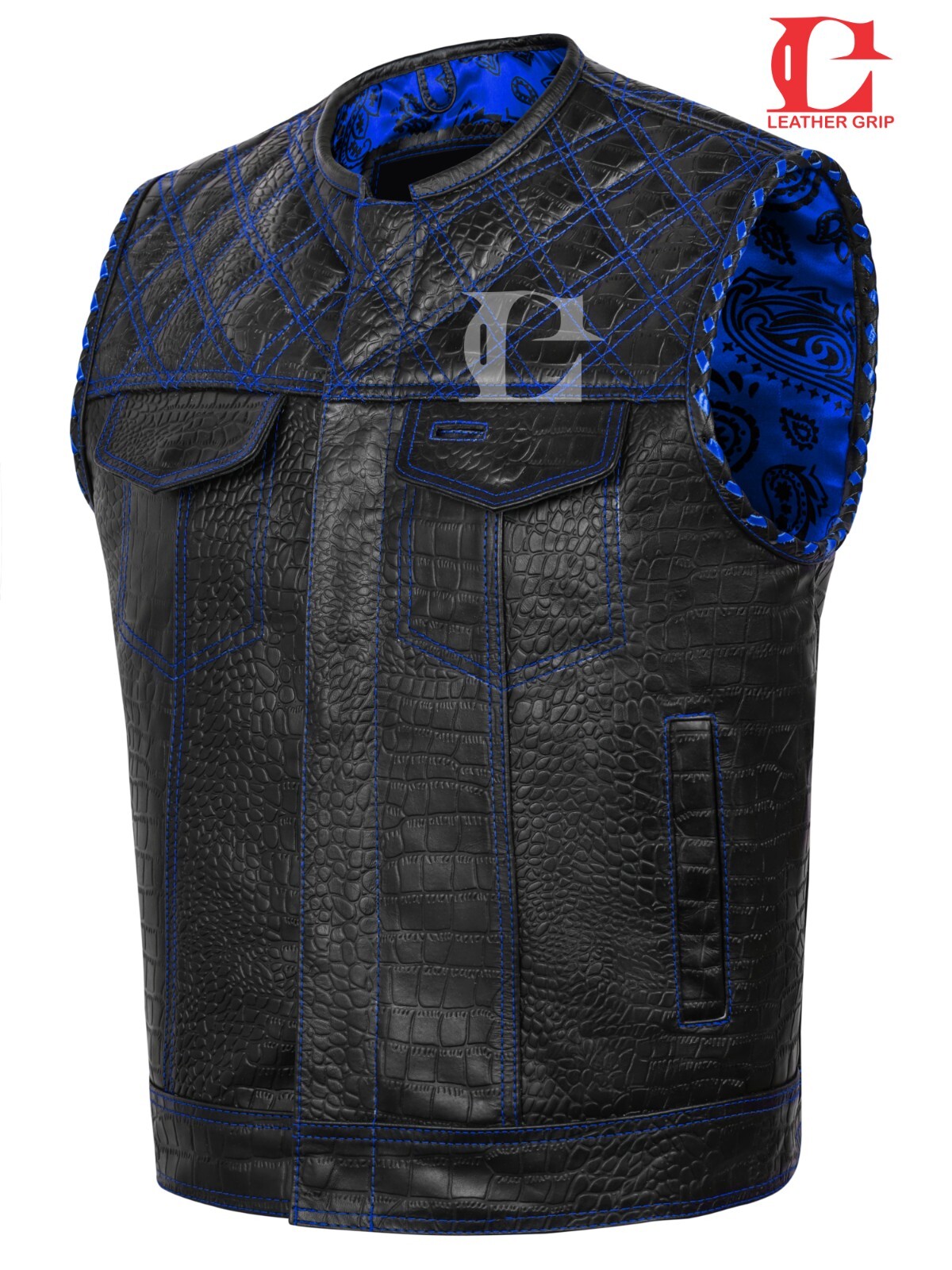Men s Biker Vest or Hunt Club Leather Diamond Quilted Motorcycle vest Black