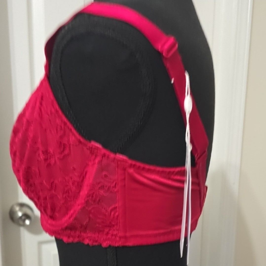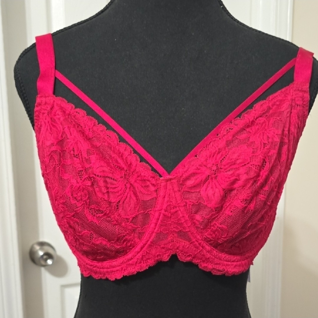 как выглядит NWT - HSIA Pretty In Petals Red Unlined Strappy Lace Bra - 34DDD фото