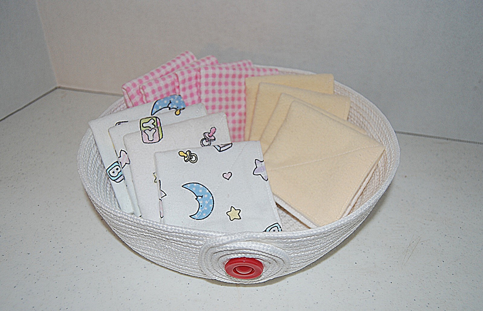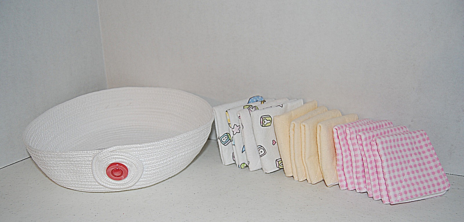 как выглядит Baby Wipes, 12 Reusable 2 ply Wipes and Girl Cord Basket Drool Handmade...NEW фото