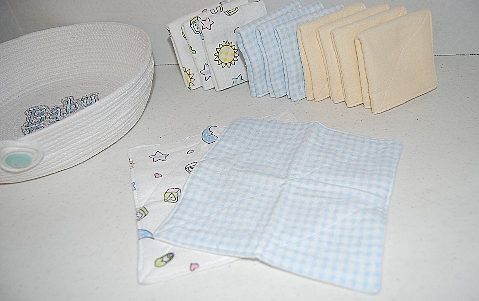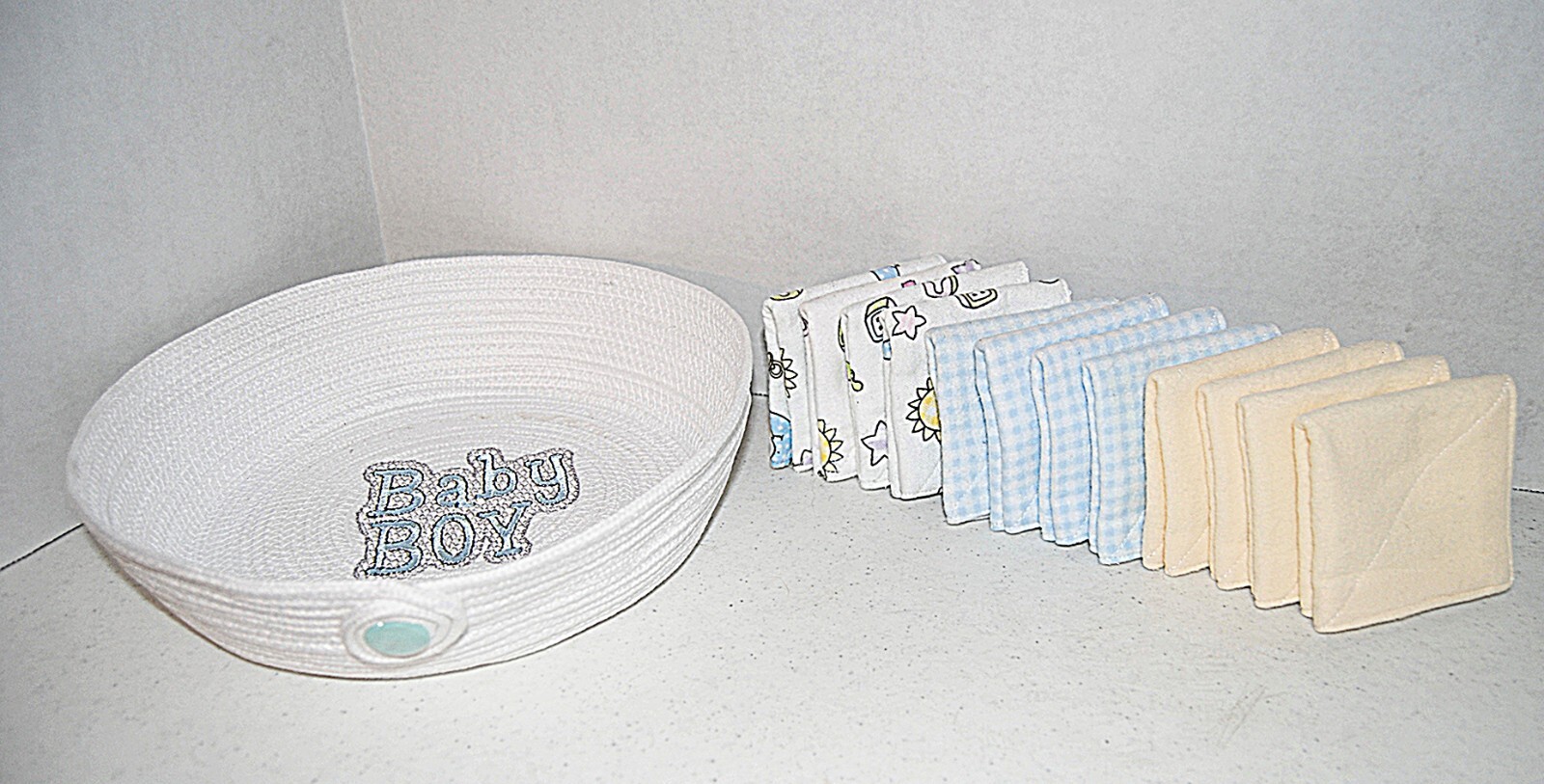 как выглядит Baby Wipes, 12 Reusable 2 ply Wipes and Boy Cord Basket Drool Handmade...NEW фото