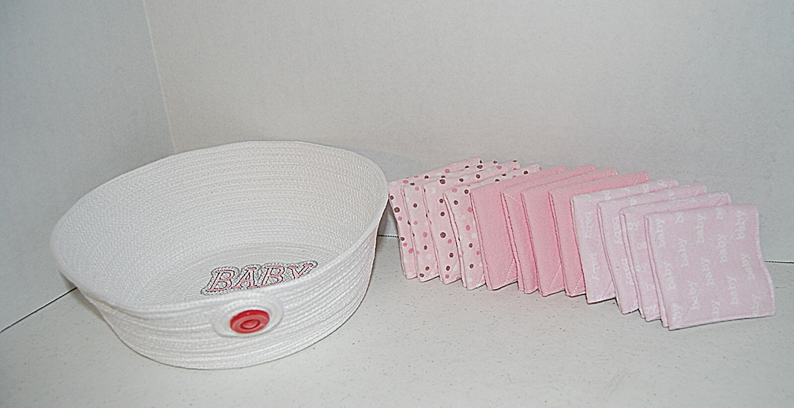 Baby Wipes, 12 Reusable 2 ply Wipes and Girl Cord Basket Drool Handmade...NEW