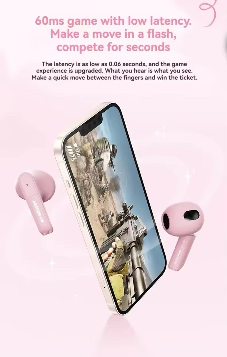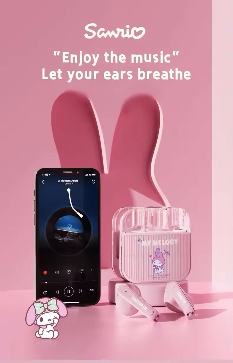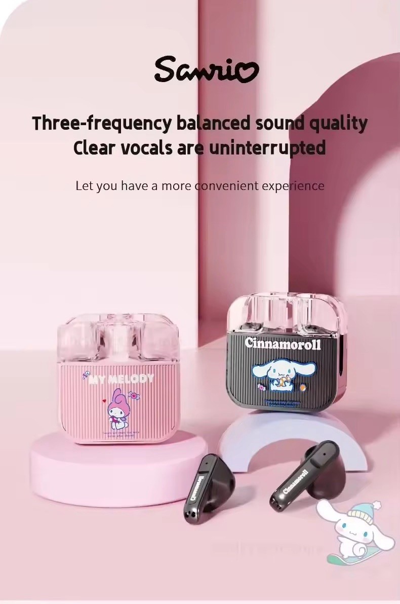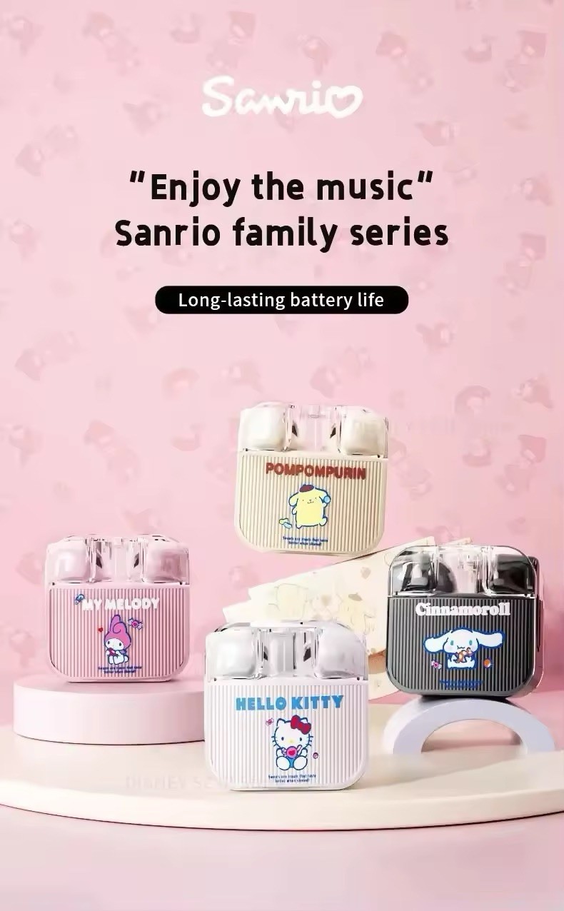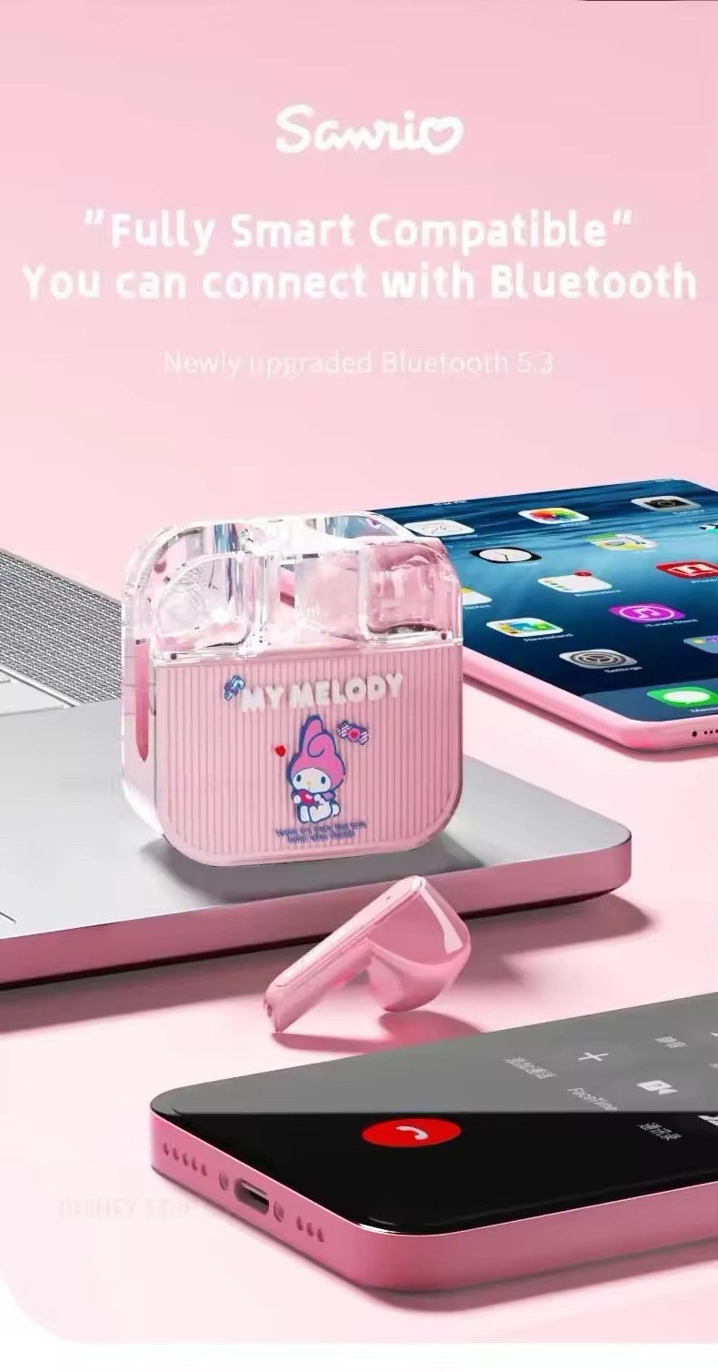 Sanrio Hello Kitty Bluetooth Earbuds TWS Q53 Wireless Head Phones Kawaii- Pink