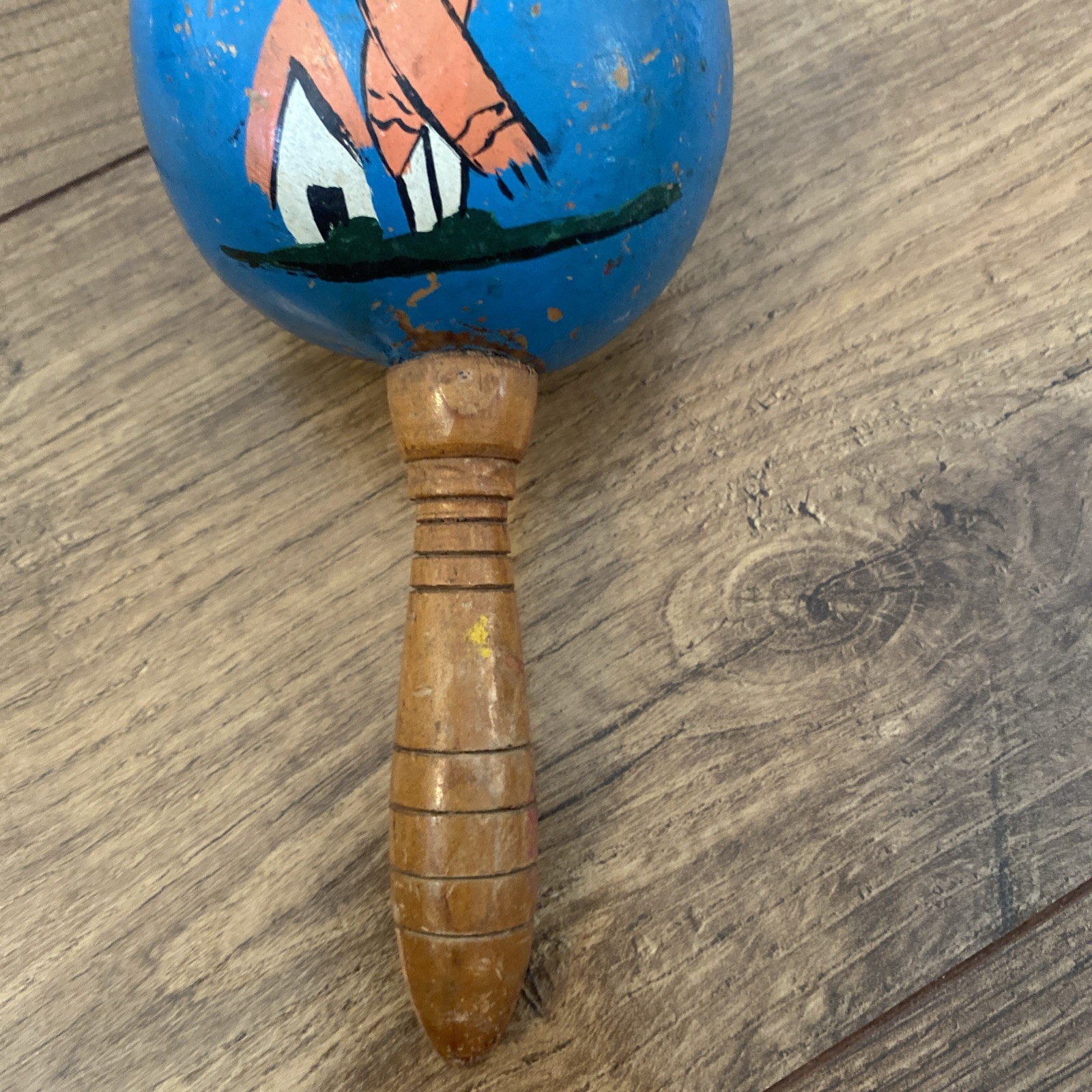 как выглядит Vintage Mexican Folk-Art Maraca Gourd Shaker Hand Painted 8" Juarez фото