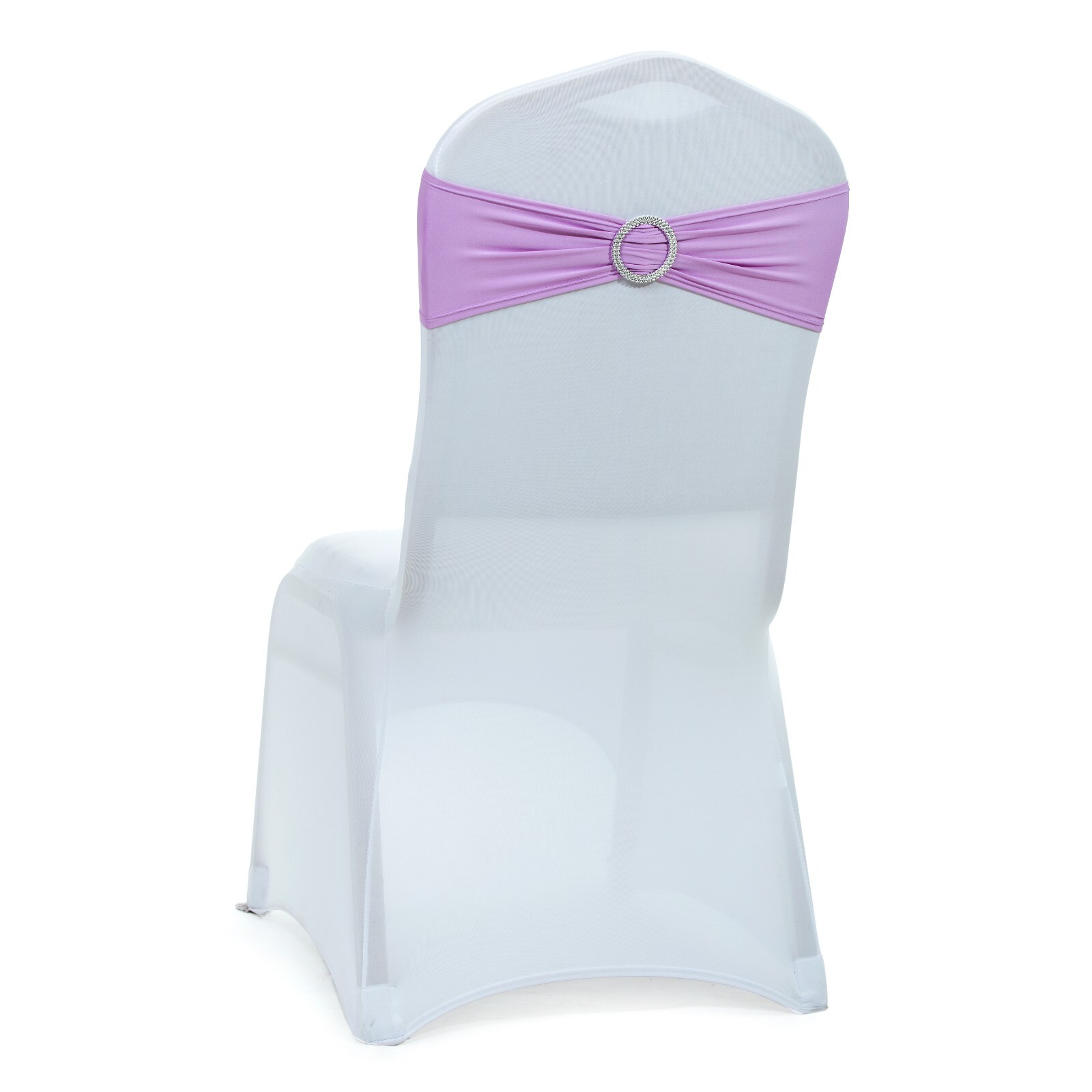 100 Light Purple Spandex Stretch Chair Sashes Bow with Slider Buckle Wedding