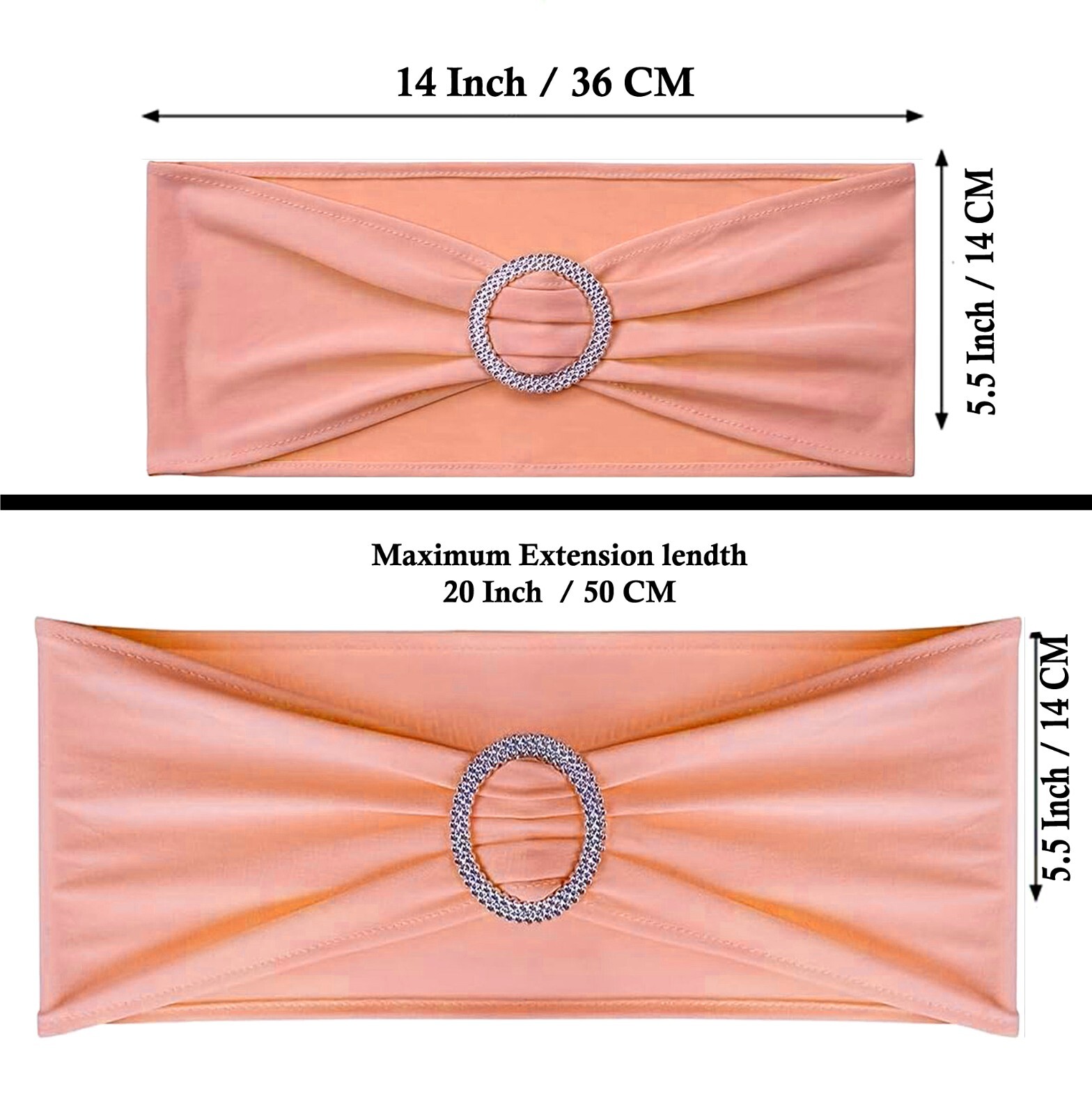 100 Coral Peach Spandex Stretch Chair Sashes Bow with Slider Buckle Wedding Deco