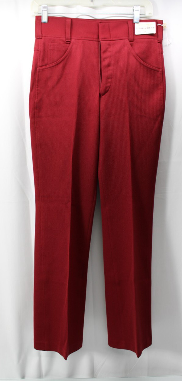 Vintage Men's Red 1970s Sears Flared Bottoms Polyester Pants Size 28 with Tags