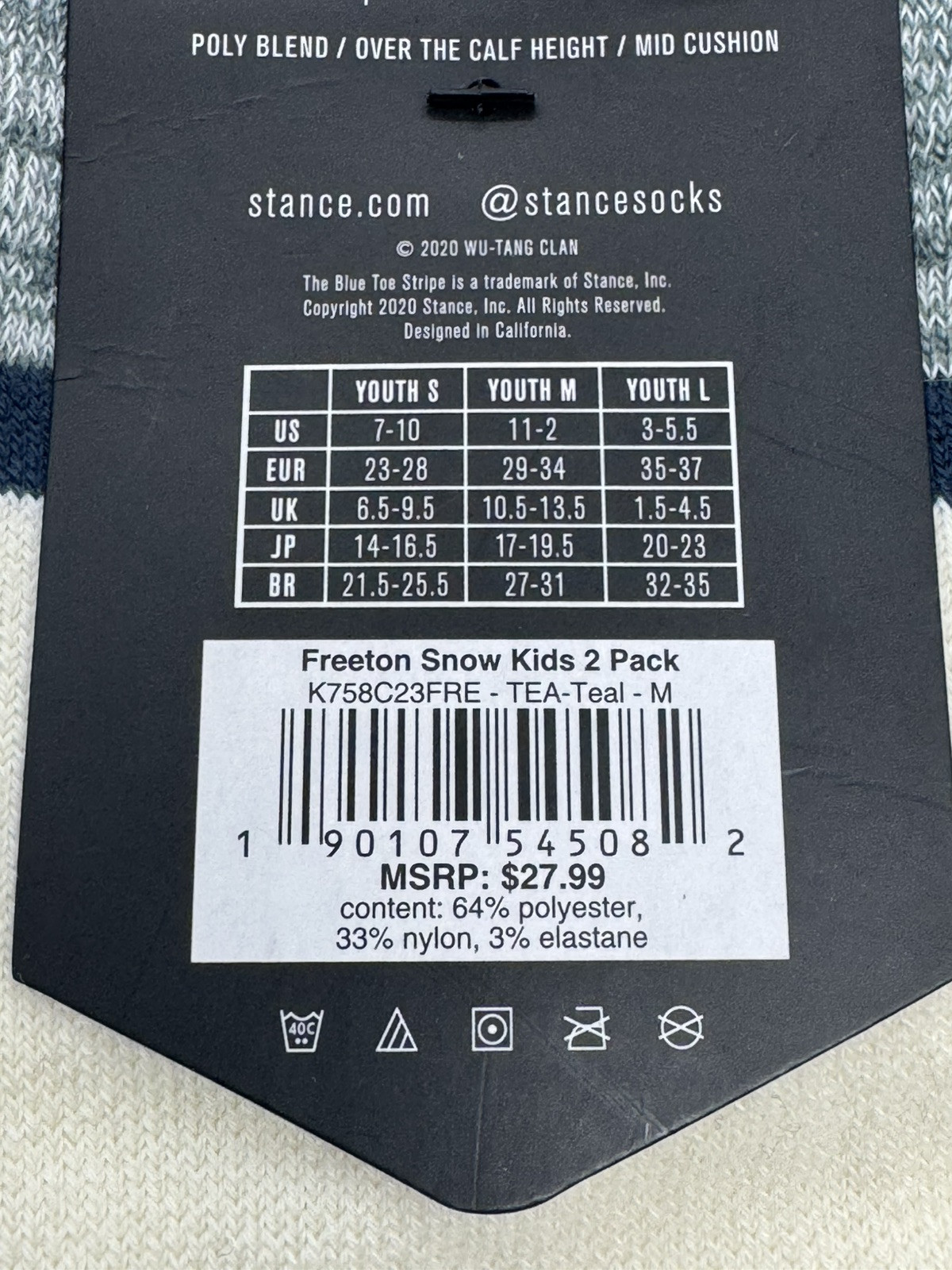 Stance, FreshTek, Kids Performance , 2 Pack Teal/Cream OTC Socks Size M Y: 11-2