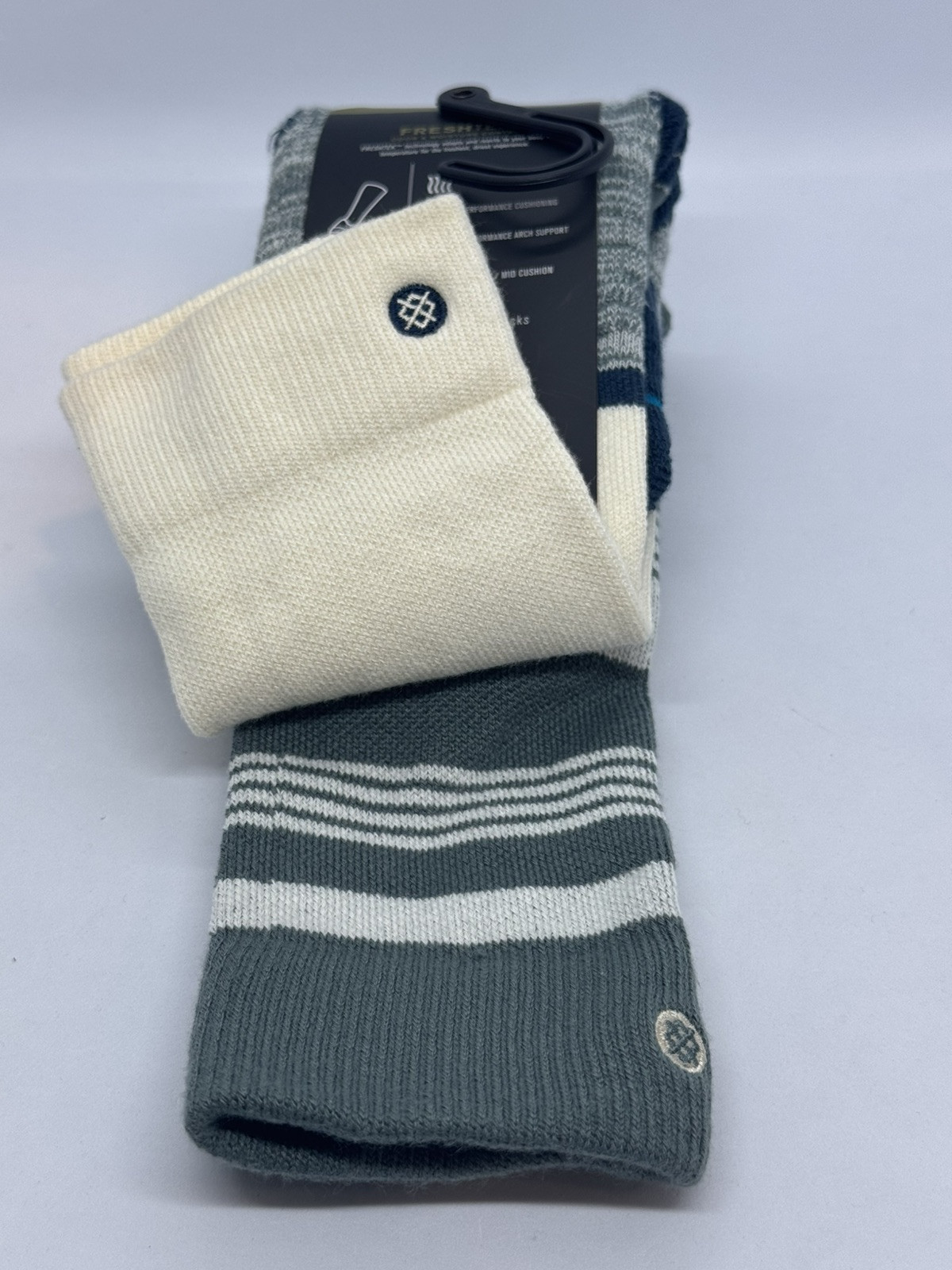 как выглядит Stance, FreshTek, Kids Performance , 2 Pack Teal/Cream OTC Socks Size M Y: 11-2 фото