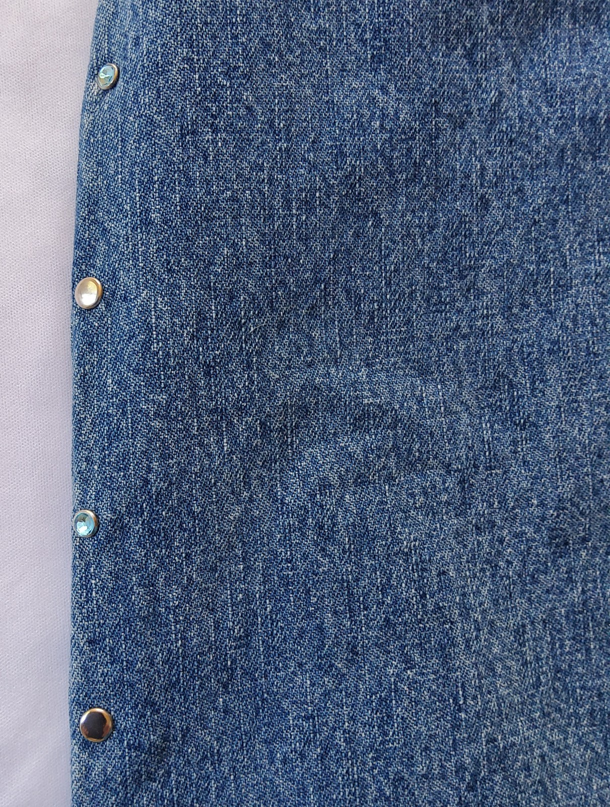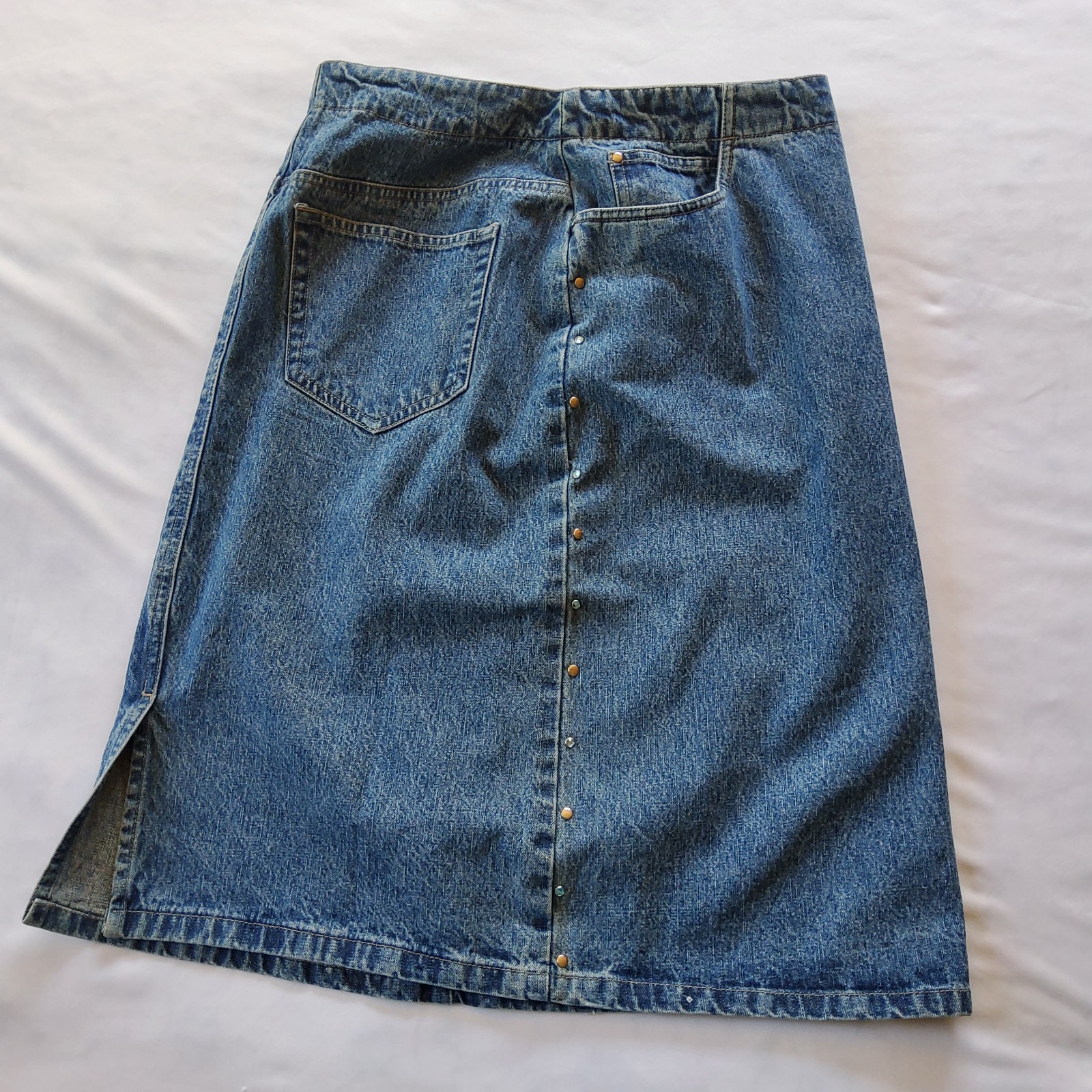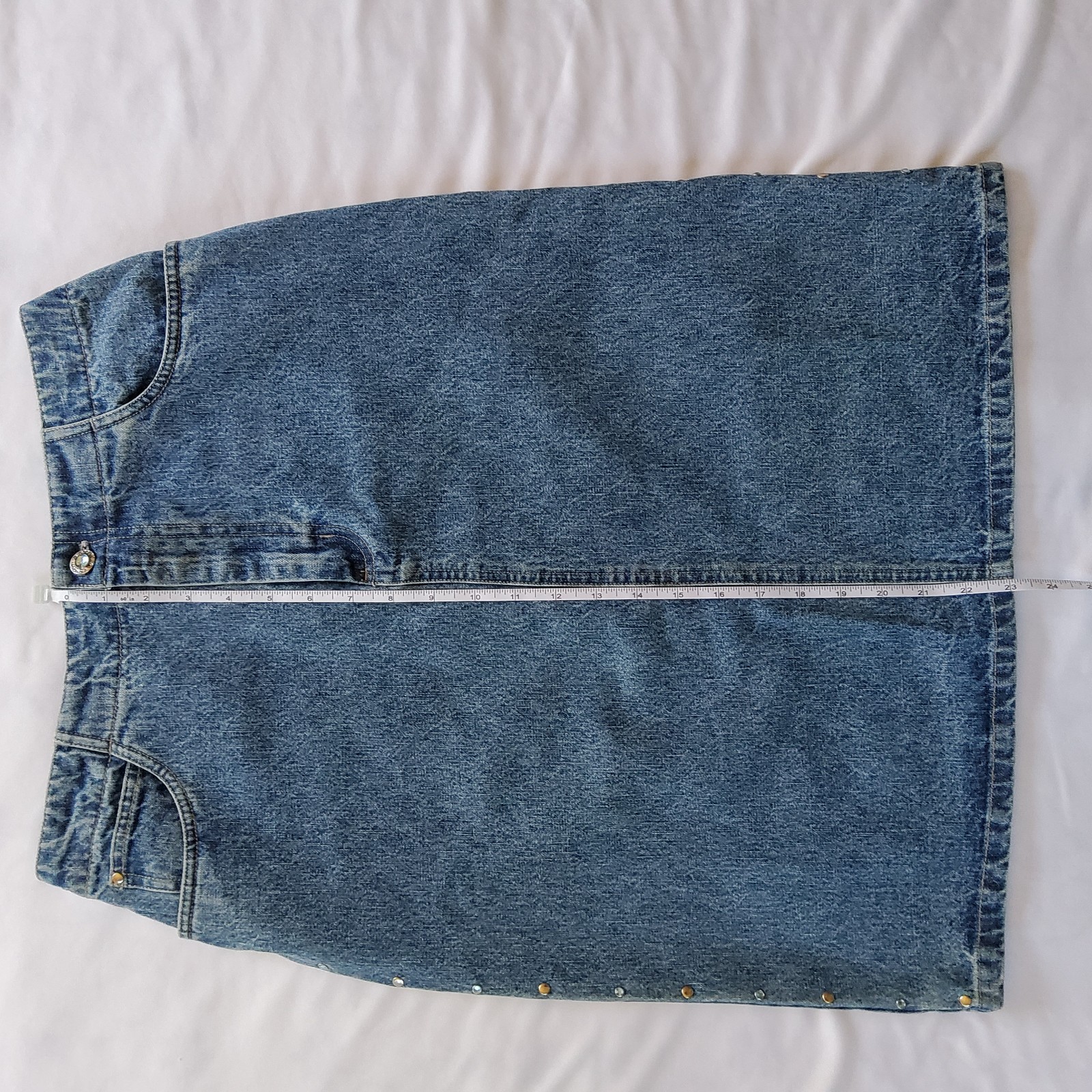 как выглядит Vintage Faded Glory Womens Distressed Denim Blue Jean Skirt Sz 8 w/Side Rivets фото