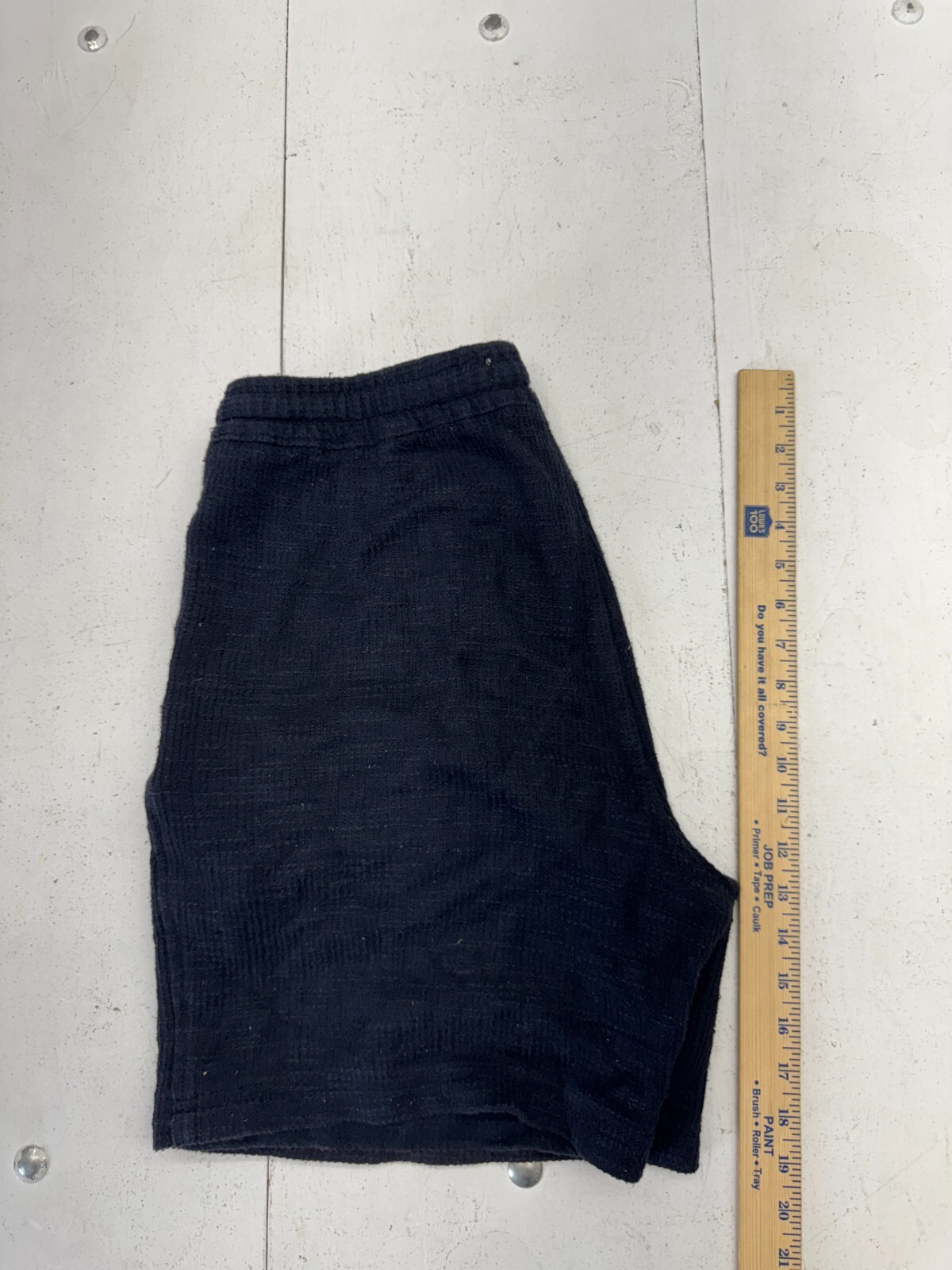Zara Navy Blue Waffle Knit Drawstring Shorts Womens Size Large