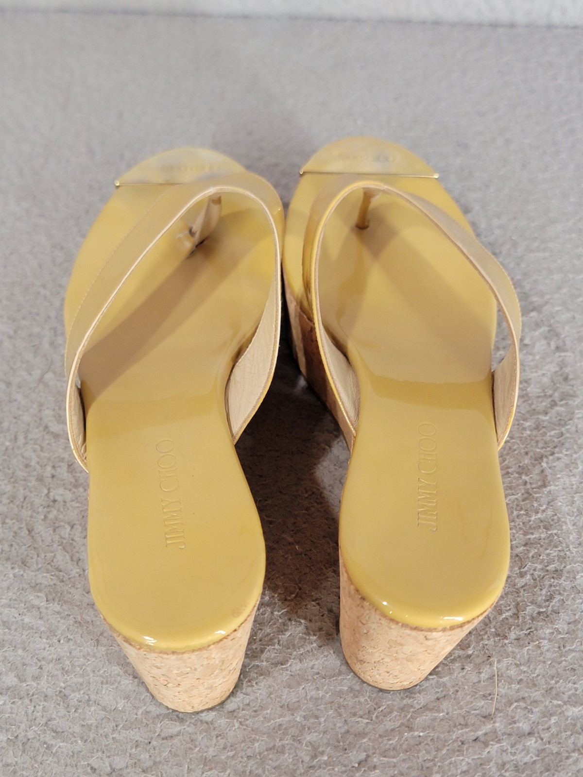 как выглядит Jimmy Choo Beige Patent Prima Platform Sandals Sz 38 HAS FLAWS READ DESCRIPTION фото