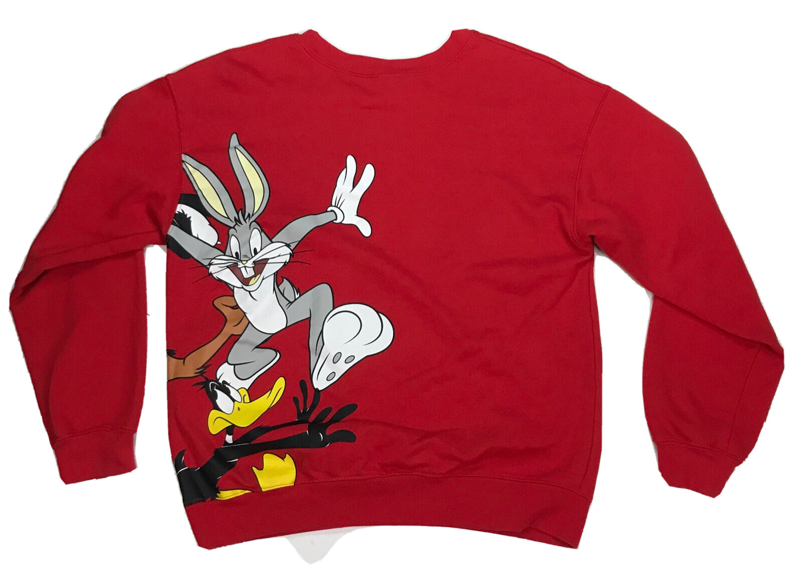 Looney Tunes Double Sided Crew Neck Red Sweatshirt Sweater Cartoon Sz. L 11-13