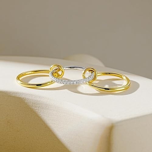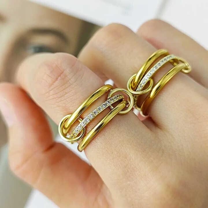 Zircon Set Eternity Band Connected Ring Set Trendy Stacking Gold Finish Rings