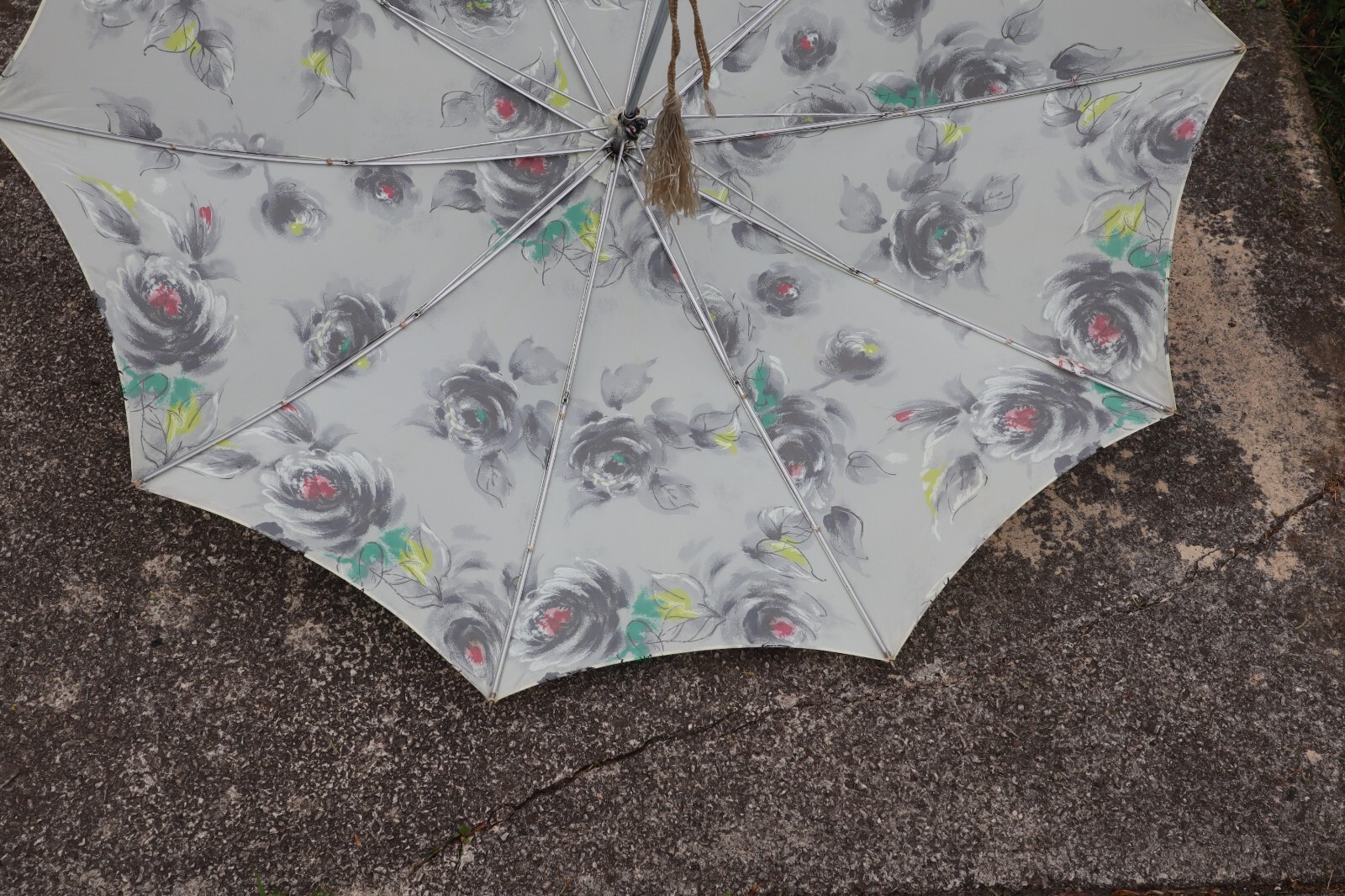 как выглядит Vintage Umbrella Mint Green Multi color Floral Imperfect фото