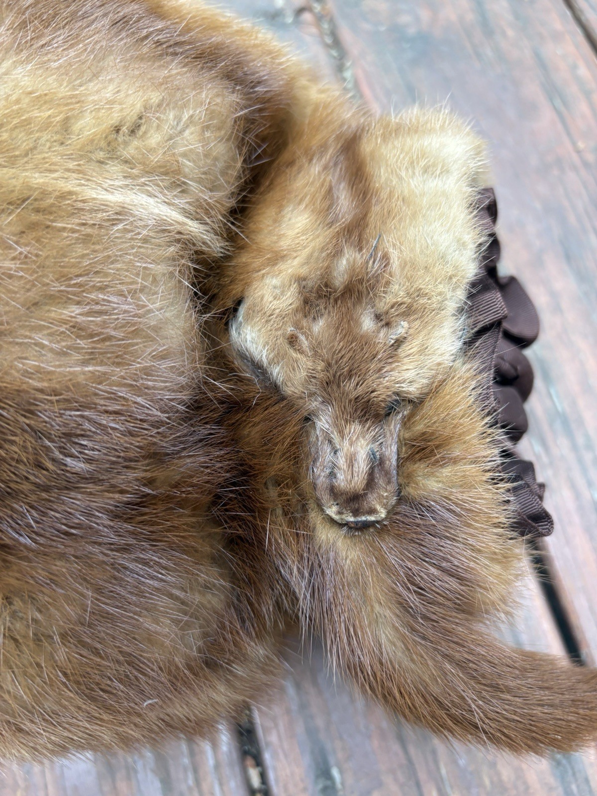 как выглядит Vintage Mink Fur Muff Hand Warmer Carry Strap W/ Heads Tails фото