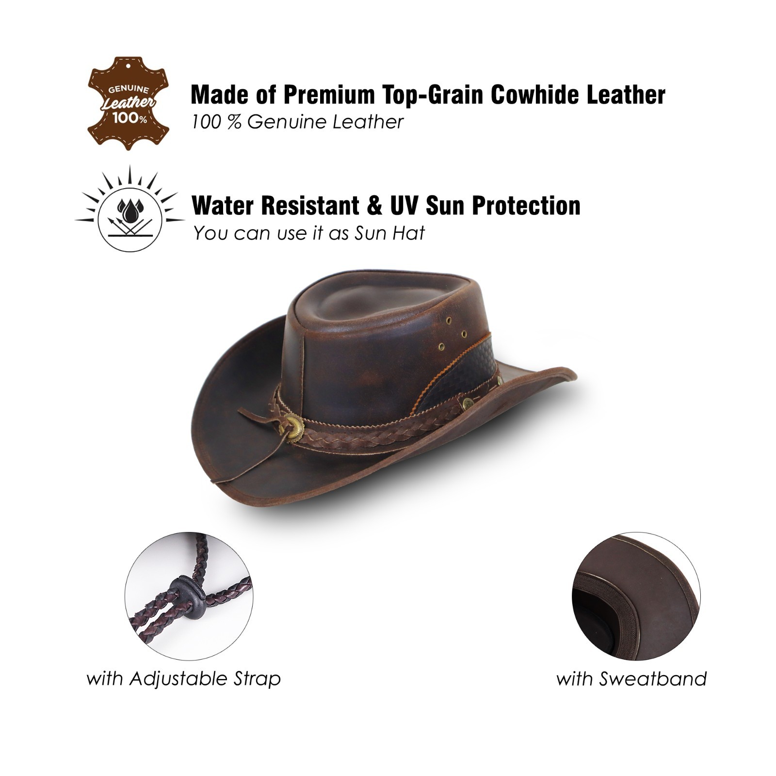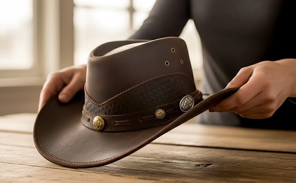 Stellman Brown Genuine Leather Western Hat for Men and Women Cowboy Hat
