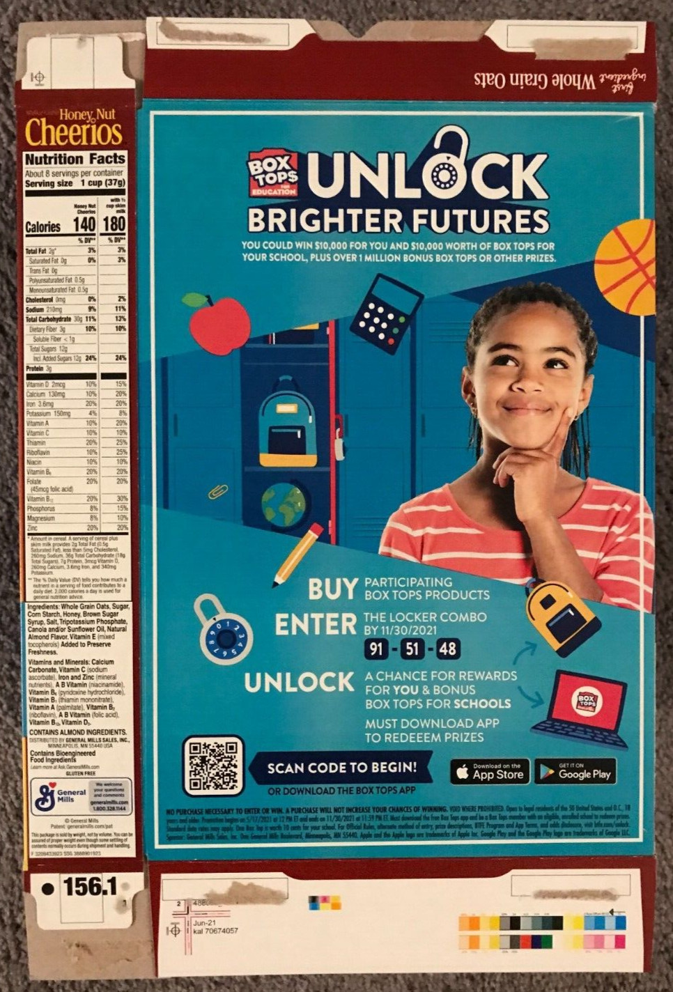 как выглядит EMPTY Honey Nut Cheerios Win 10,000 School Box Tops Cereal Box FLATTENED 2021 фото