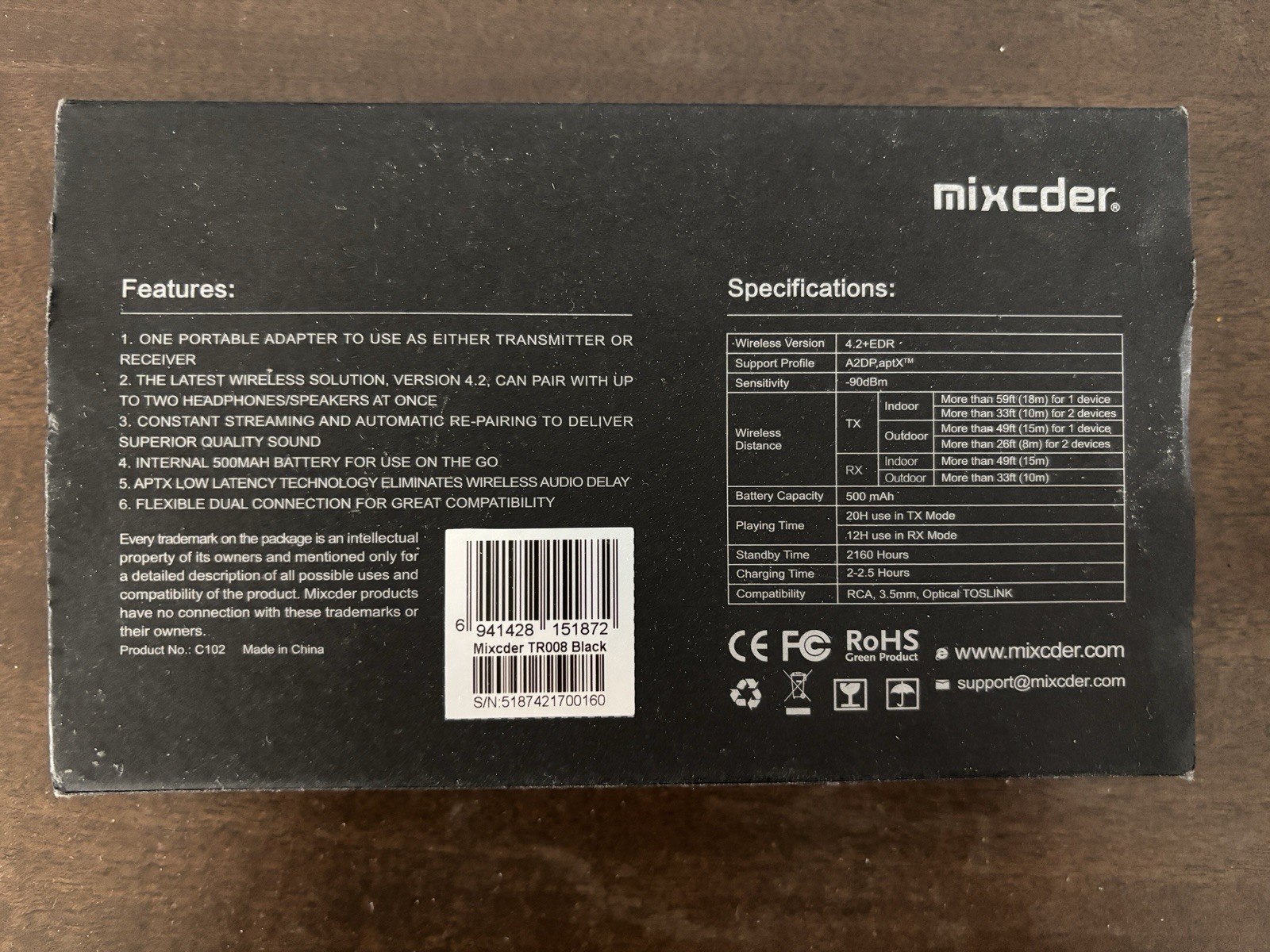 Mixcdr TR008 Bluetooth 4.2 Transmitter Receiver 2-in-1 aptX Low Latency Open box