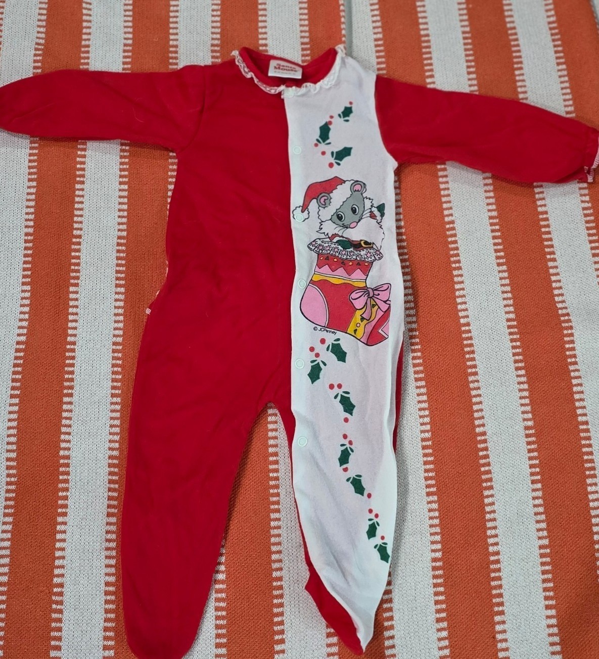 как выглядит Vintage 90s JcPennys Santa Mouse Girls Christmas Sleep N Play 14.5-18 s 6M фото