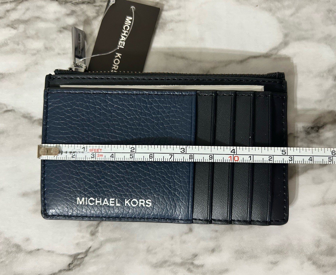 Michael Kors Cooper Slim Pebbled Leather Zip Wallet - Navy Blue and Black