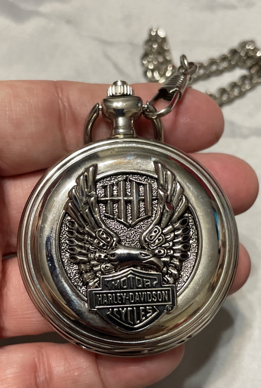 как выглядит FRANKLIN MINT Harley-Davidson "Wings of Glory" Pocket Watch W/ Case фото