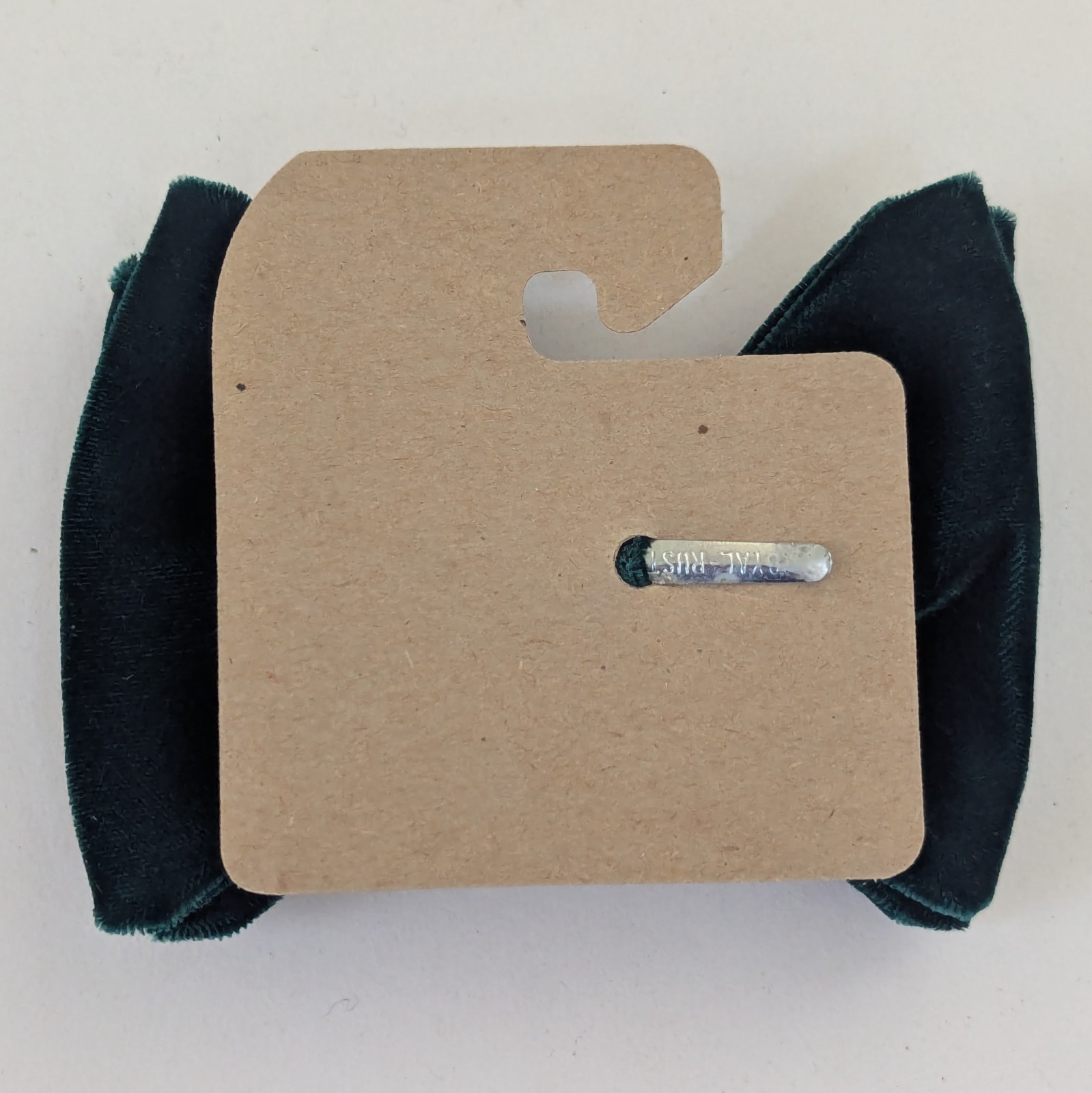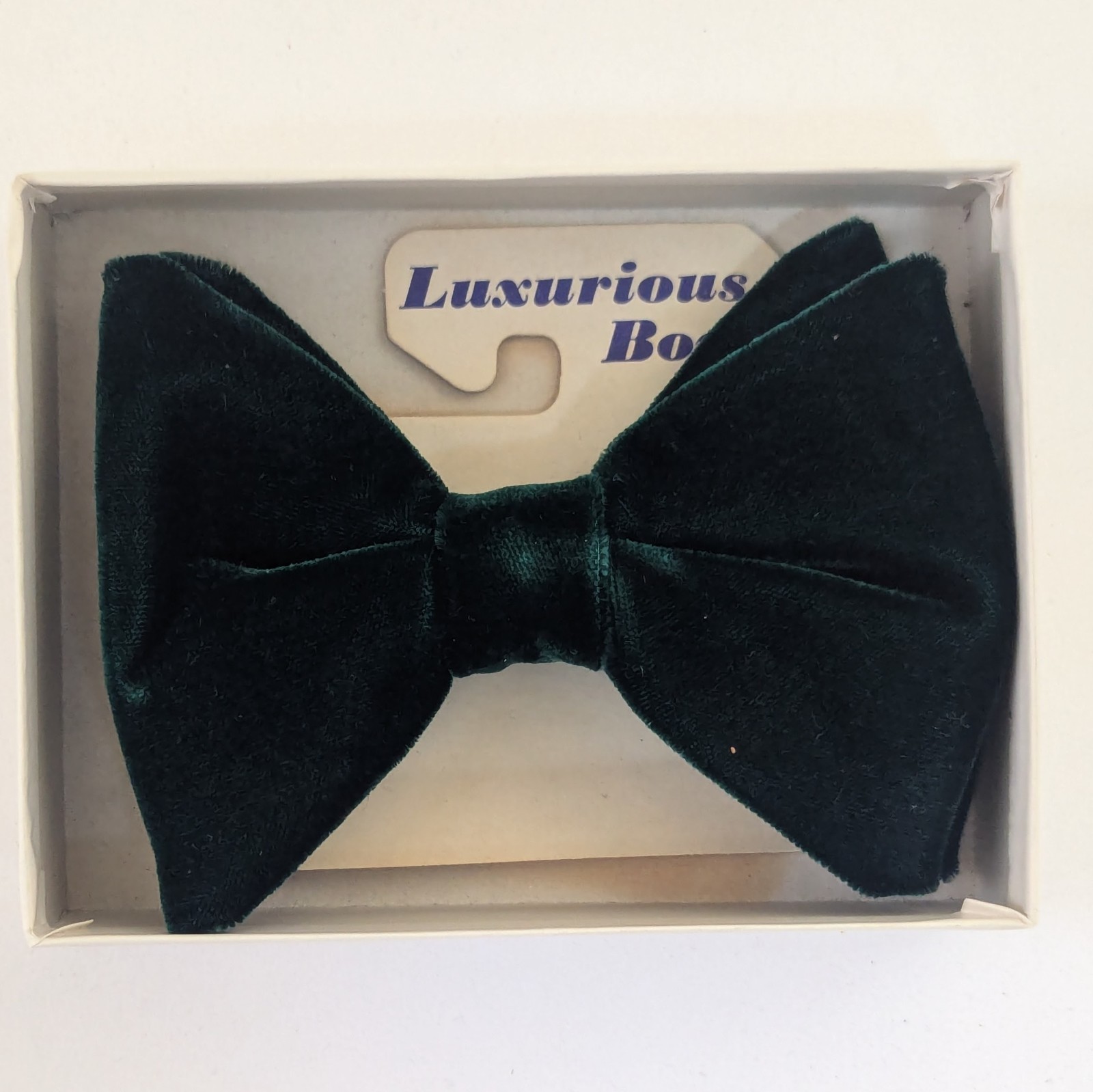 1970s Vintage Dark Green Velvet Bow Tie Oversized Large Butterfly Clip On 3
