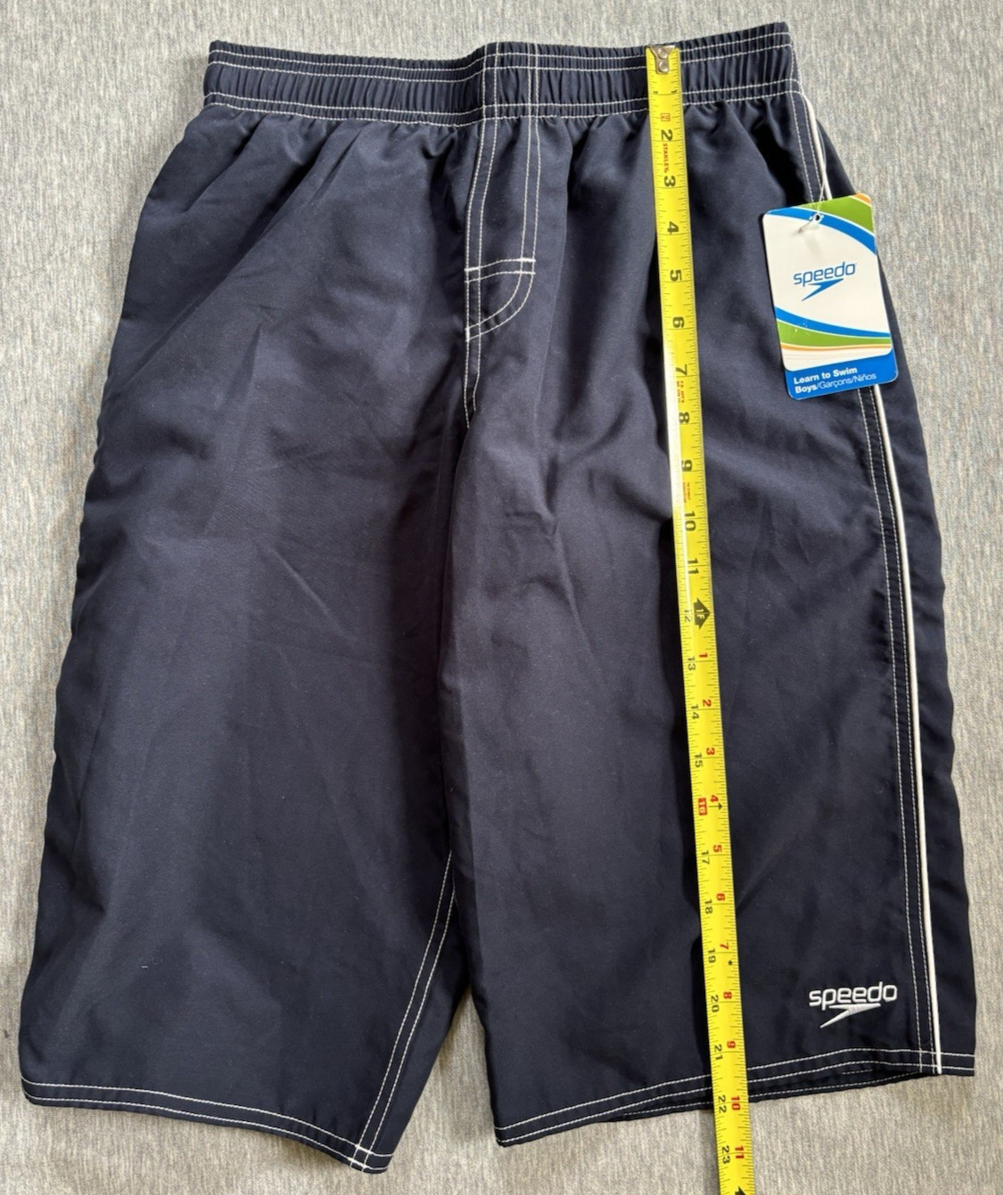 Speedo Swim Shorts Jammer Trunks Botttoms Boys Size 10 Navy Blue White NWT