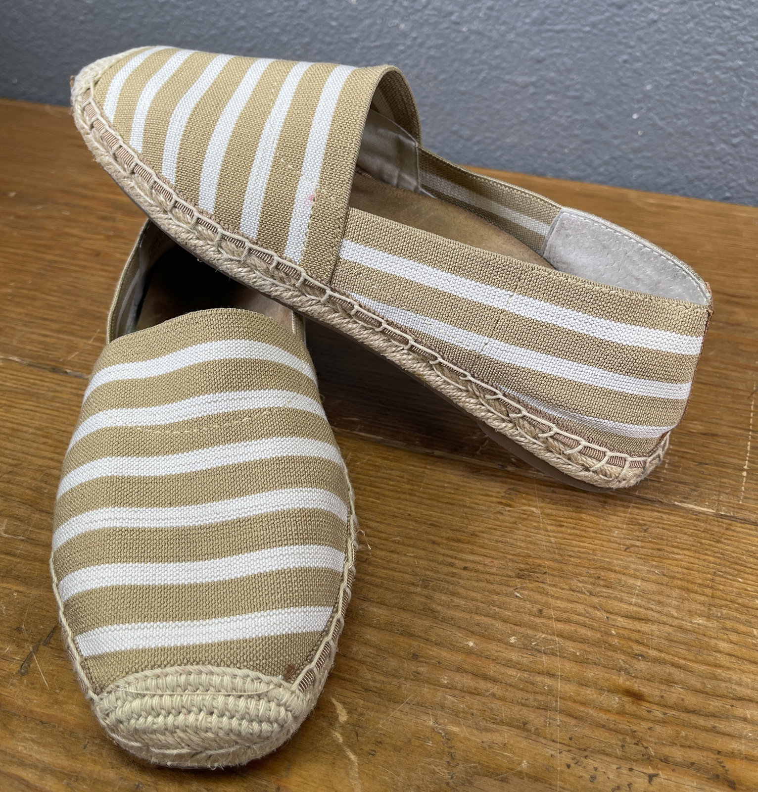 Vionic Coast Valeri Sand Stripe Flat Slip On Shoe Us 7.5