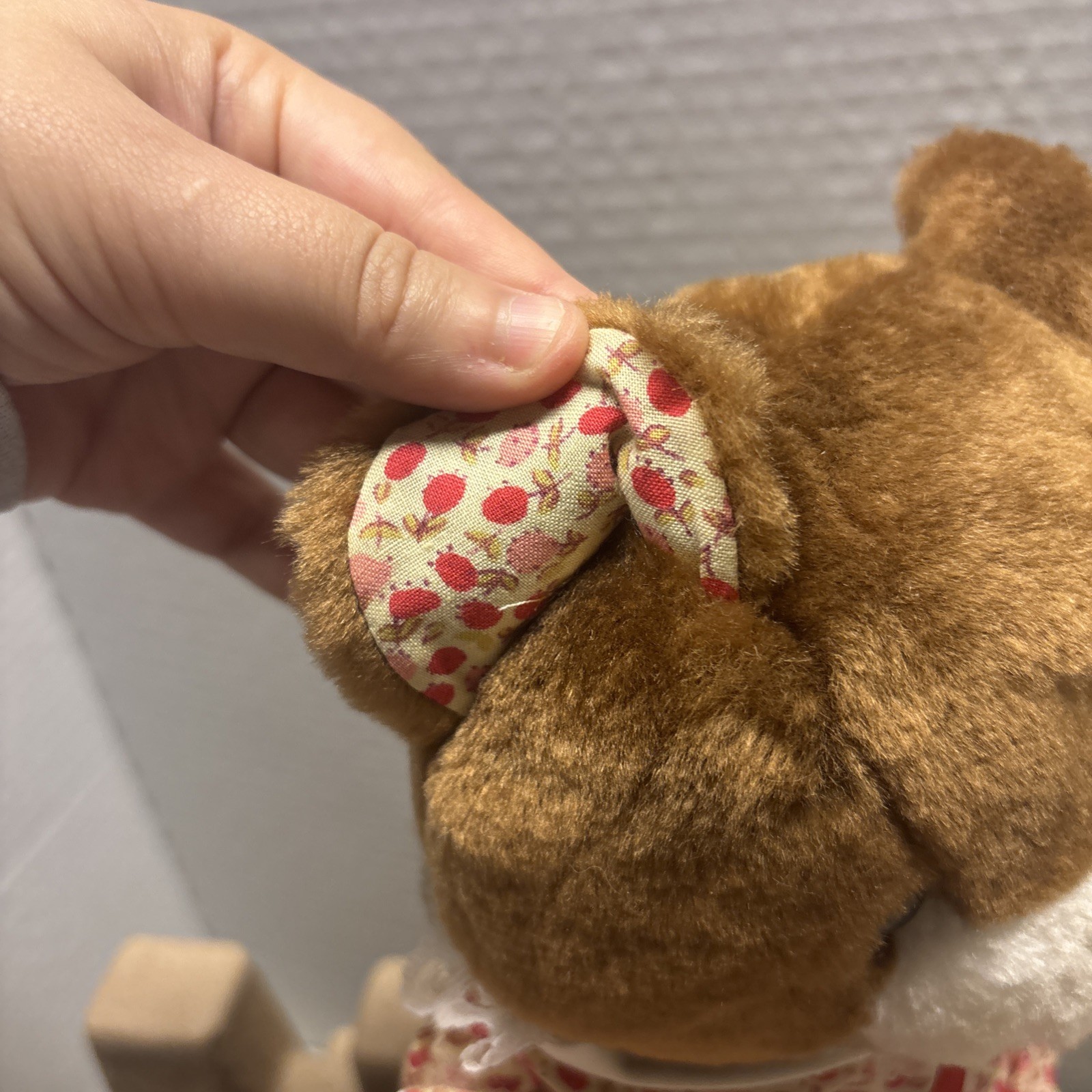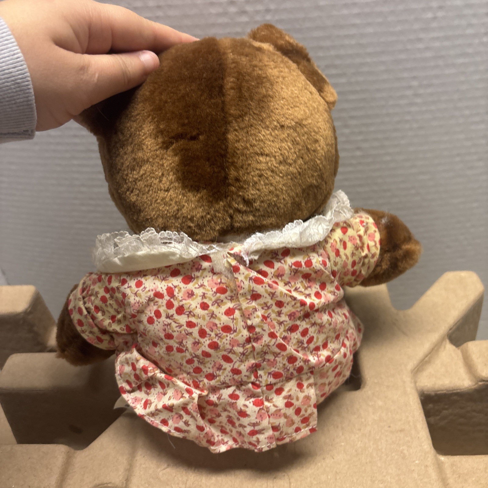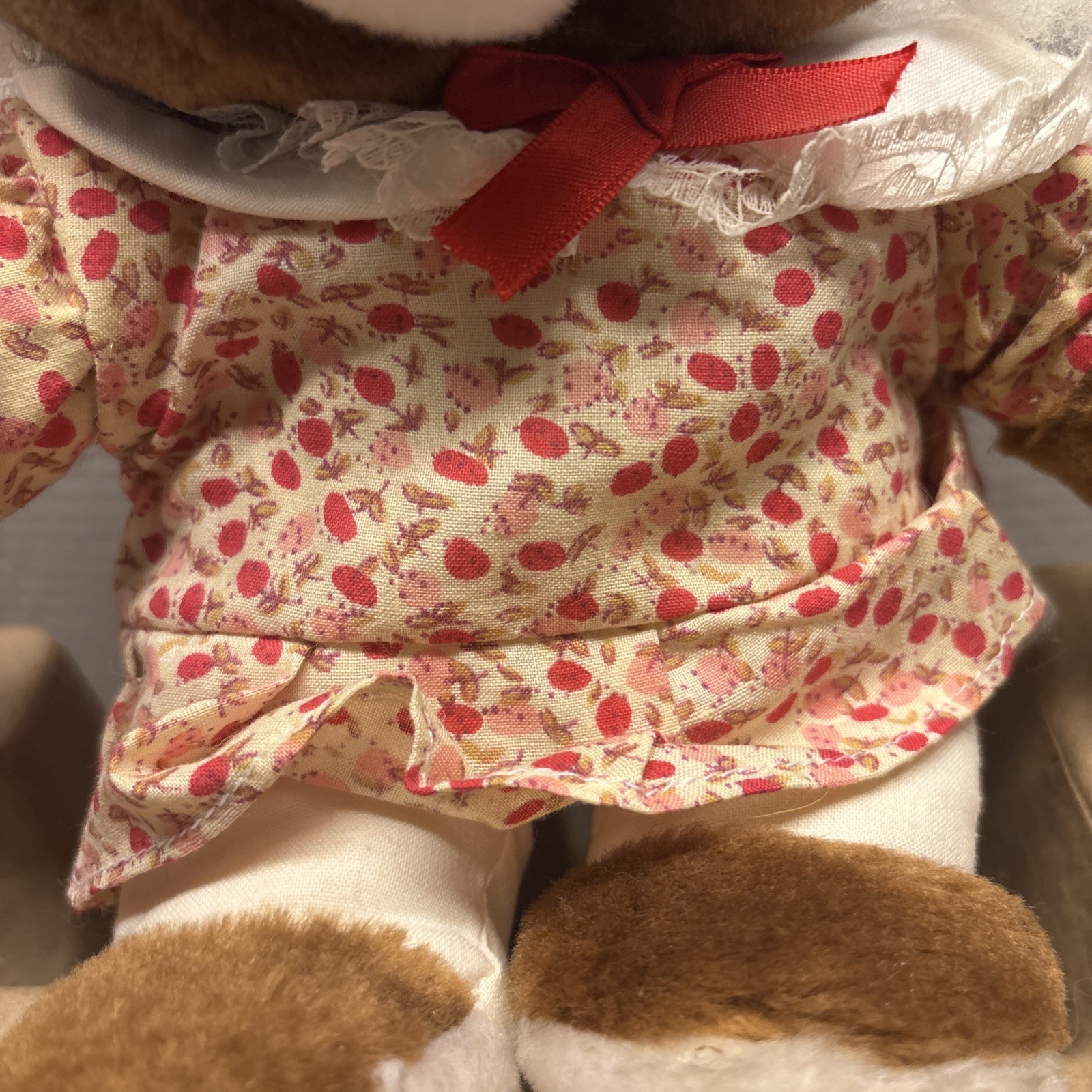 как выглядит Vintage Plush Teddy Bear with Floral Dress and Bow фото