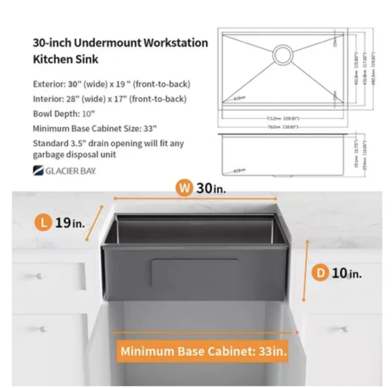 Minimum Cabinet Size (in.): 33